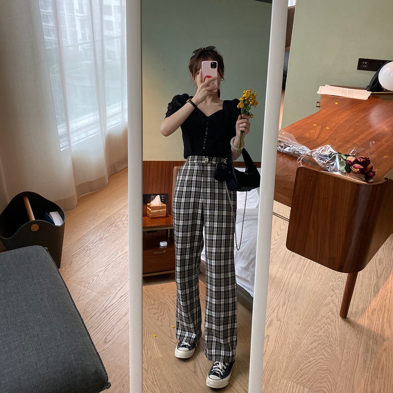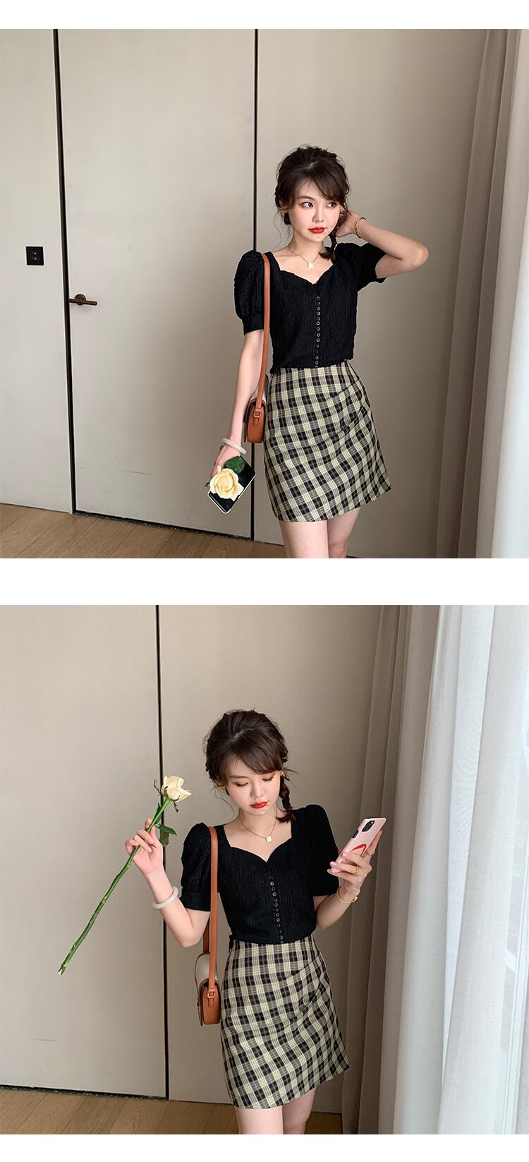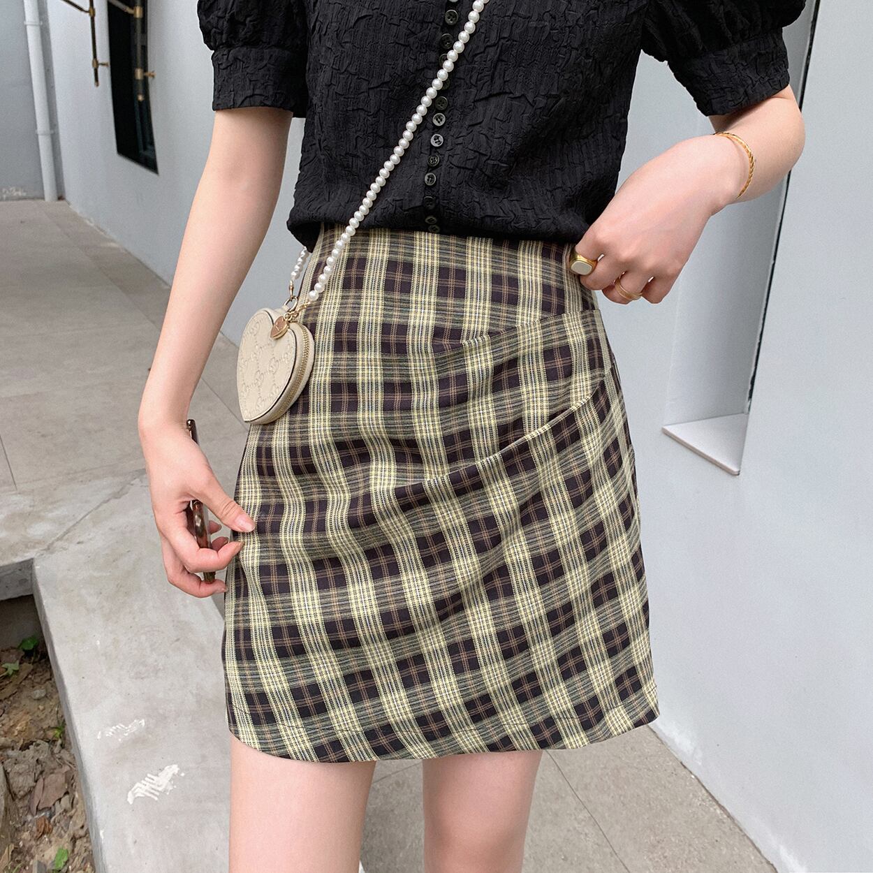 ミスシマリスチェック柄スカート女性夏aタイプハイウエストスリミング2020新しいショートスカートトップツーピーススーツ missi87425857863
