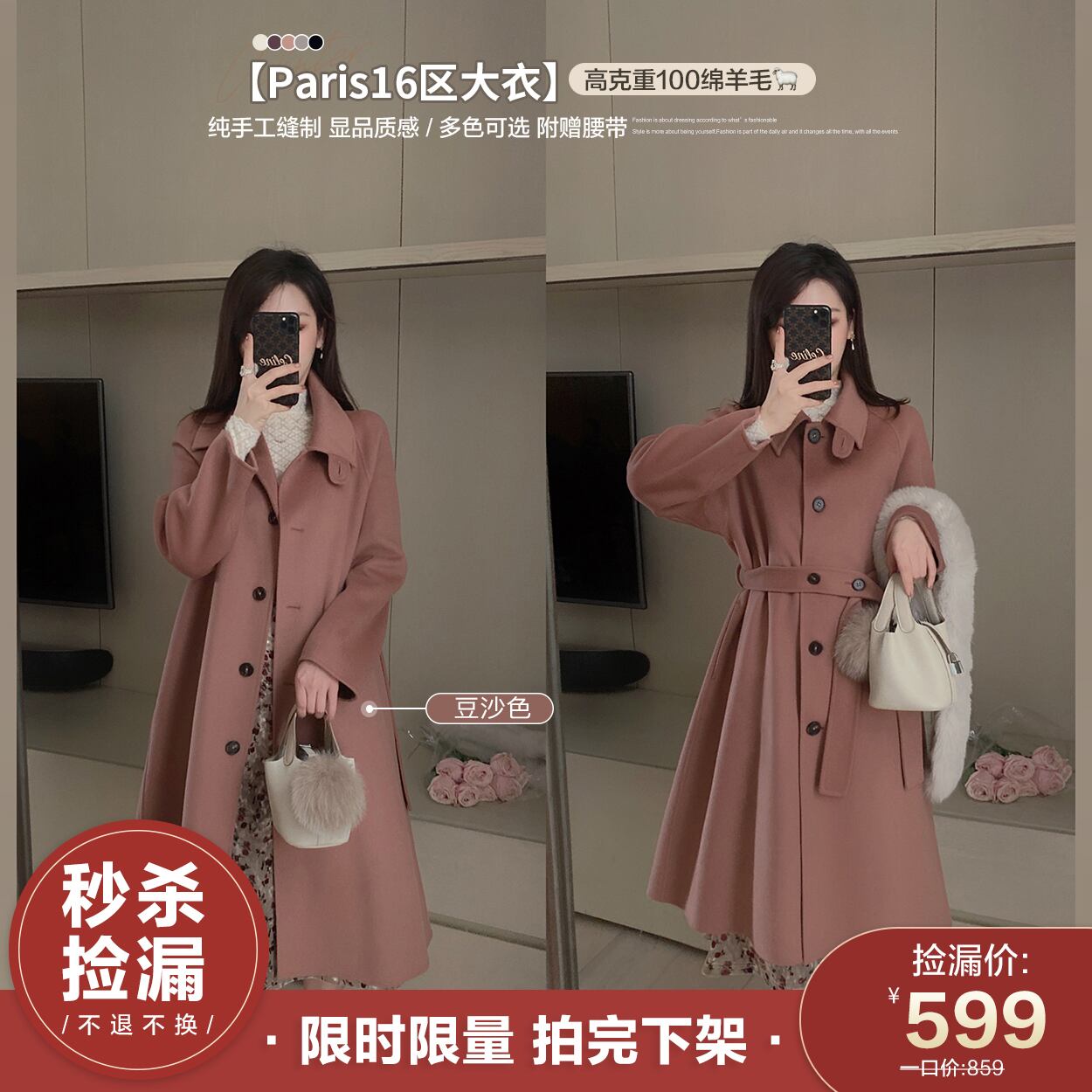 ミスシマリスパリ16区100羊毛コートレディースミドル丈とスモールウールコート missi55877097466