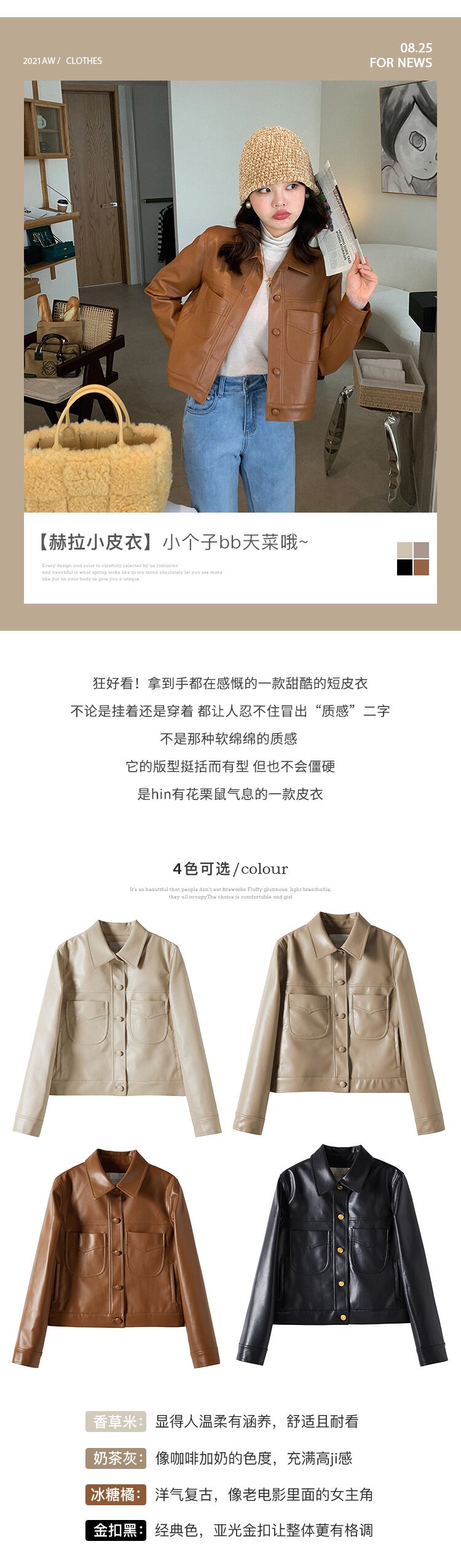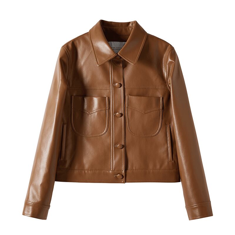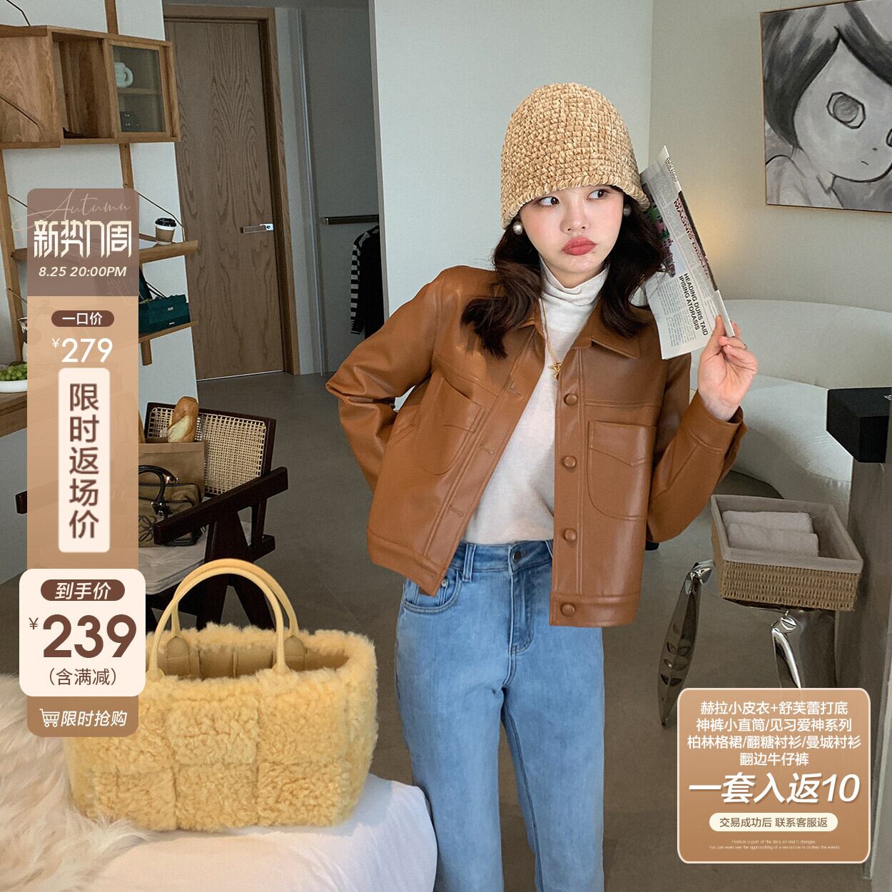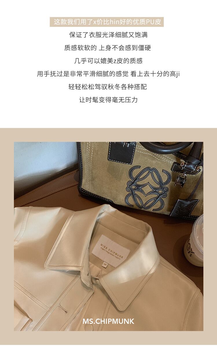 ミスチップマンク【ヘラリトルレザージャケット】ショートレザージャケット女性秋ファッションブラウンレトロリトルマン missi83553631087