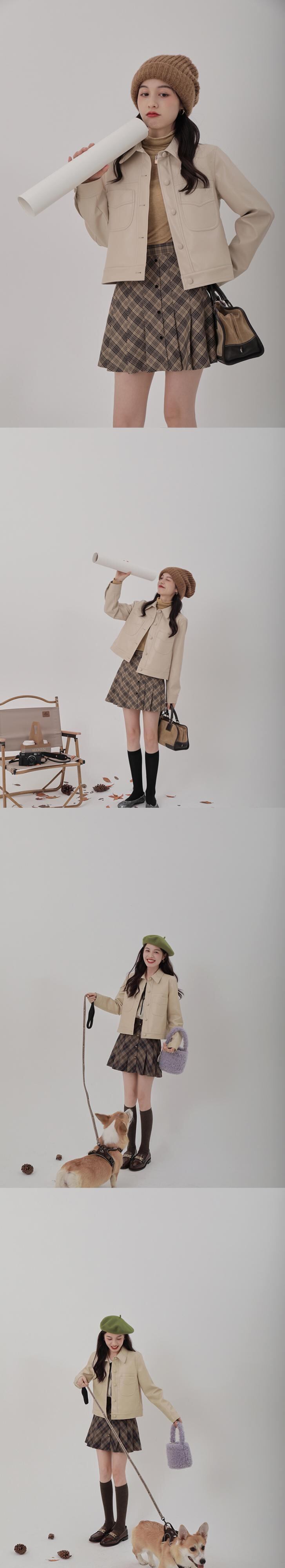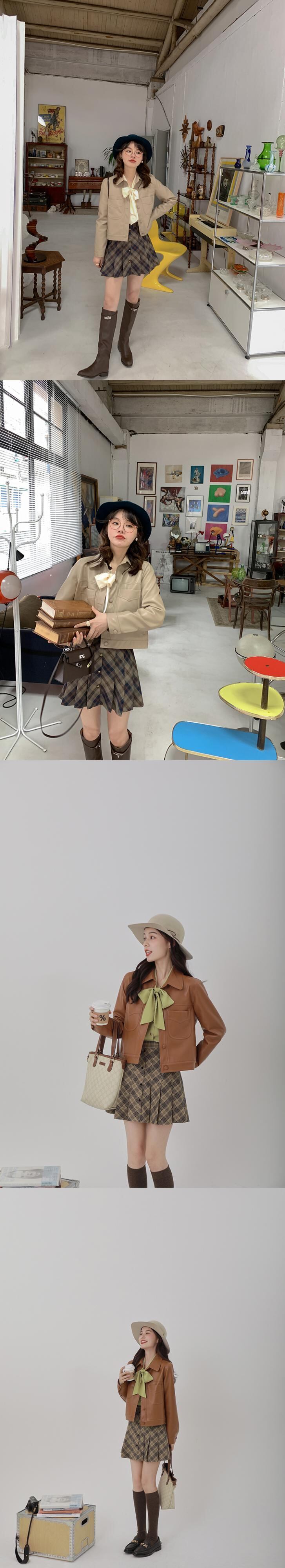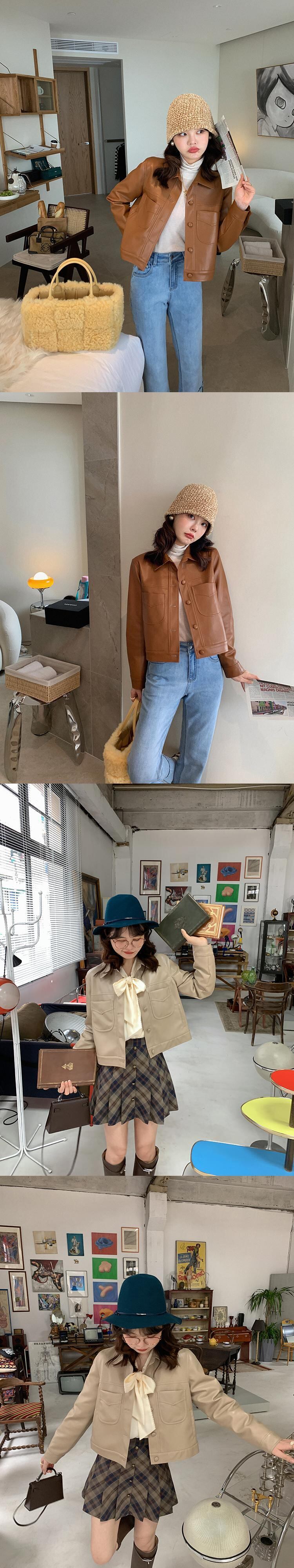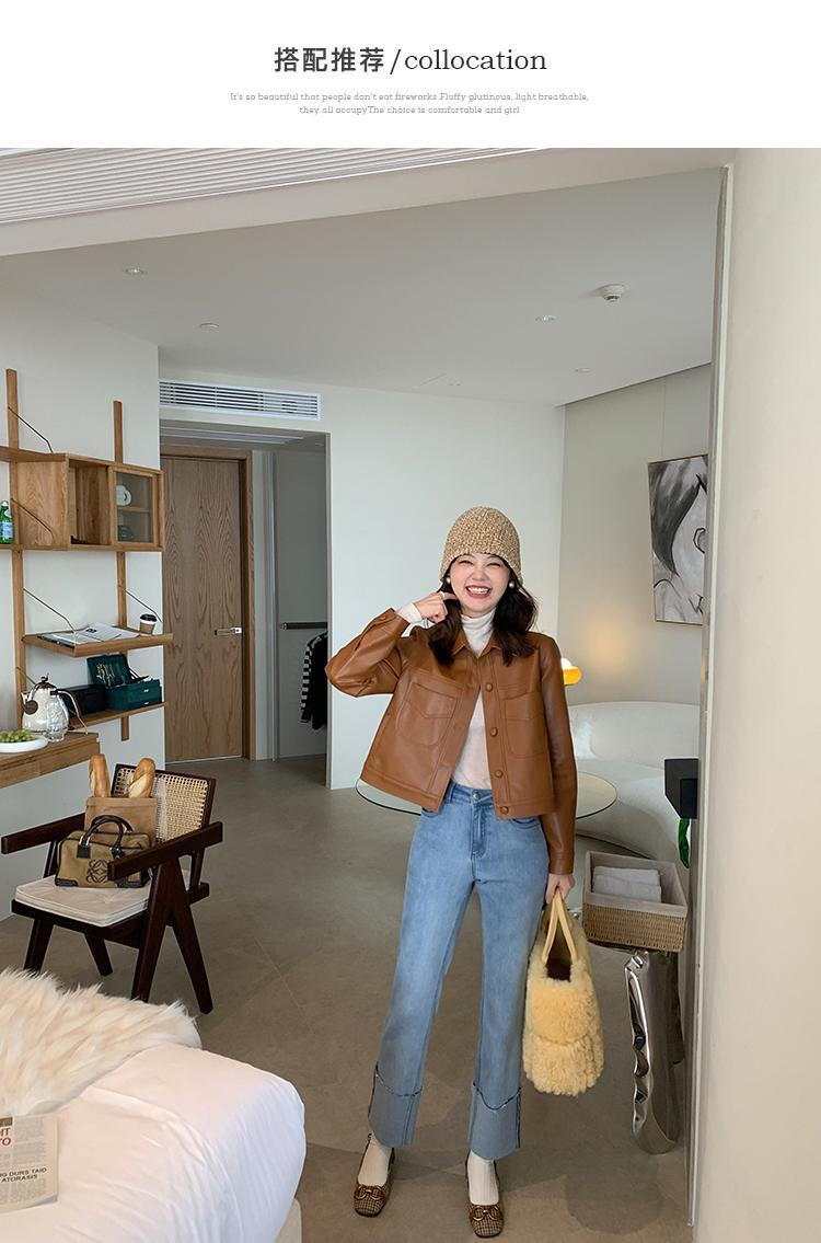 ミスチップマンク【ヘラリトルレザージャケット】ショートレザージャケット女性秋ファッションブラウンレトロリトルマン missi83553631087