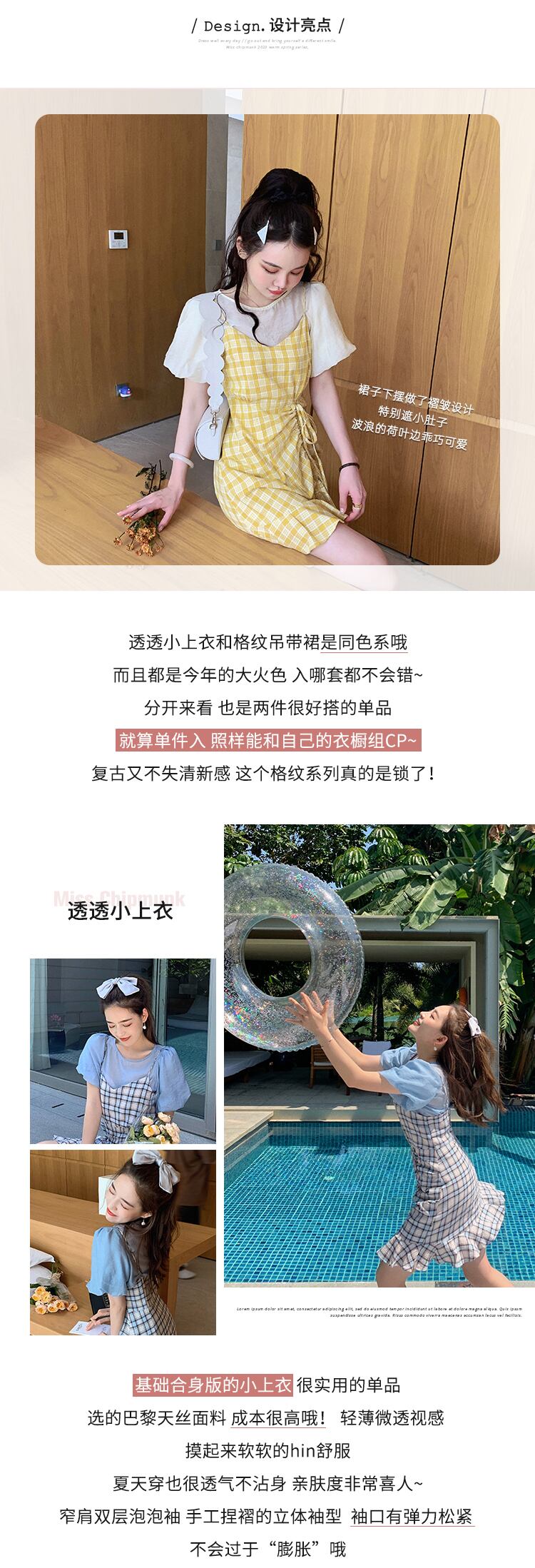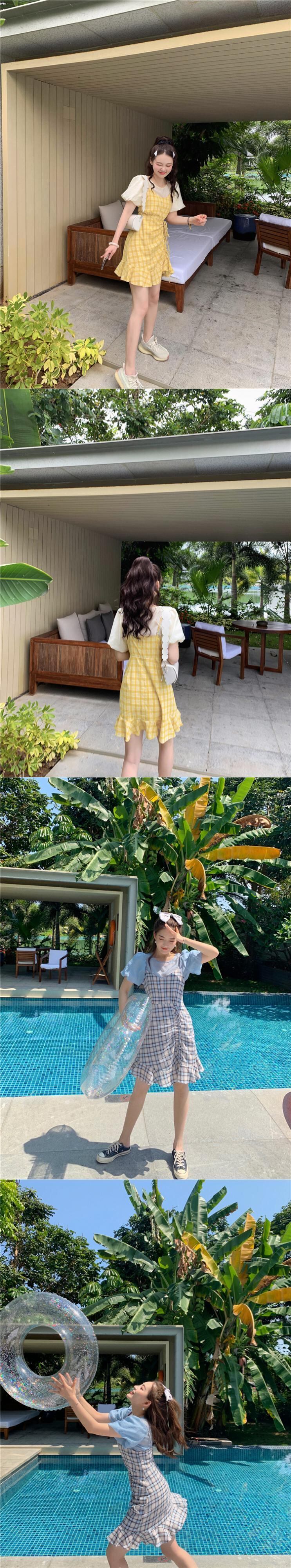 ミスシマリスフローラルドレス女性2021年新しい春と夏の黄色のサスペンダースカートトップツーピーススーツ missi45308064369