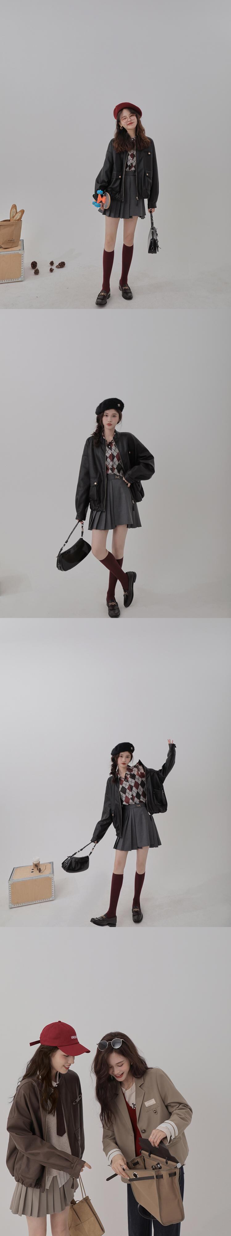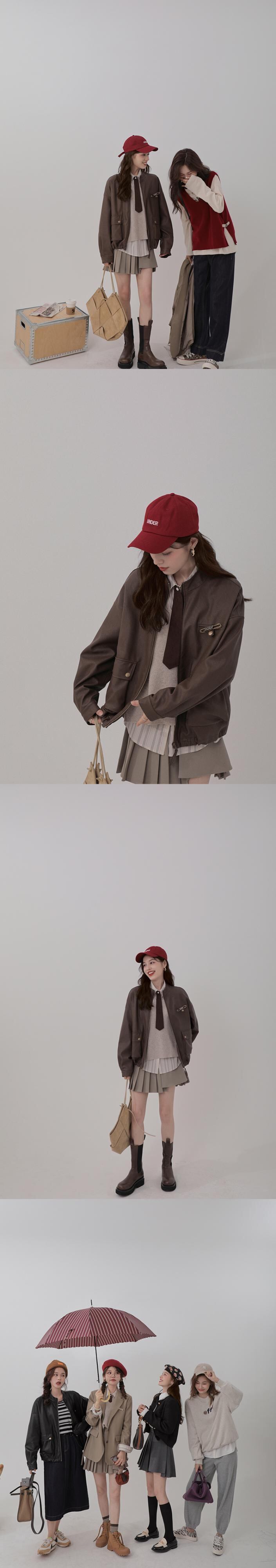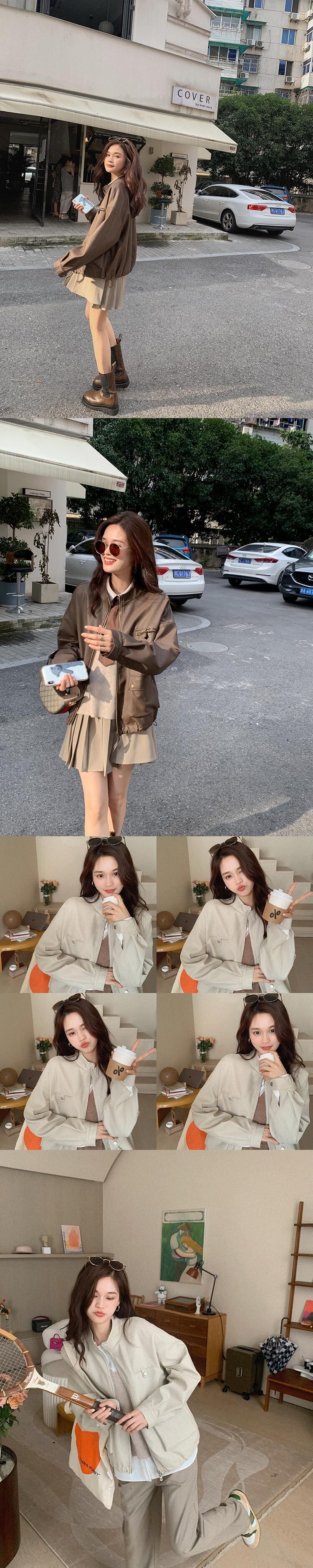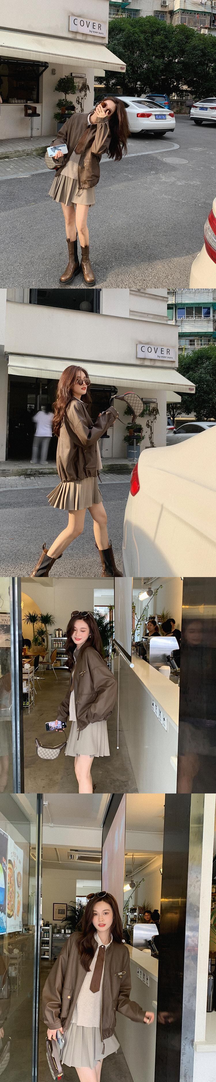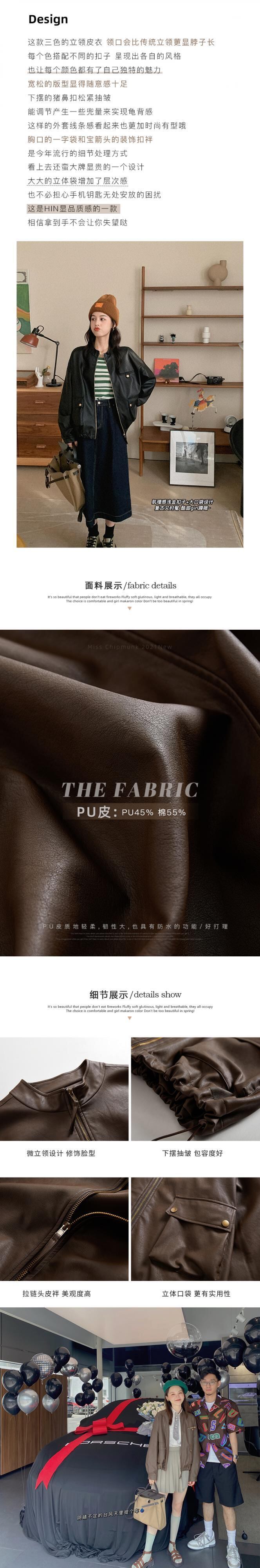 ミスチップマンク[バロックレザー]レザージャケット女性2021年春秋新作ブラウンプーレザージャケット missi40101241459