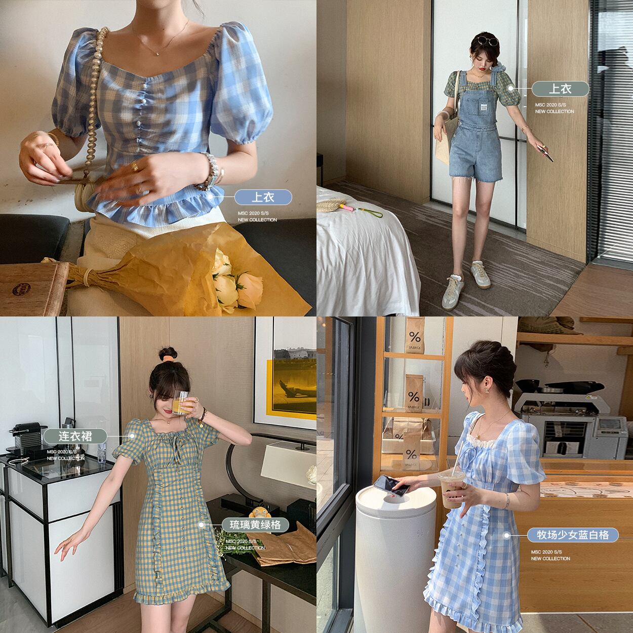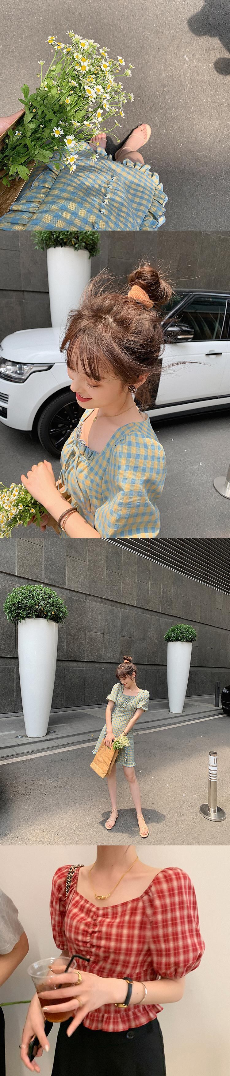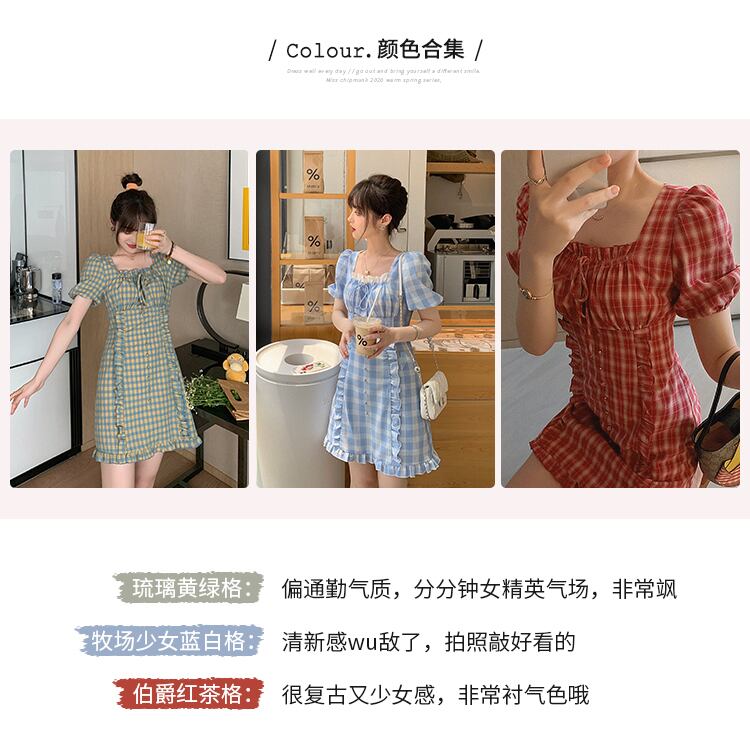 色:トップEarlブラックTeaGrid,トップス釉黄緑グリッド,トップランチの青と白のグリッド,ドレスアール紅茶,黄緑のドレス,ドレス牧場の青と白のグリッド