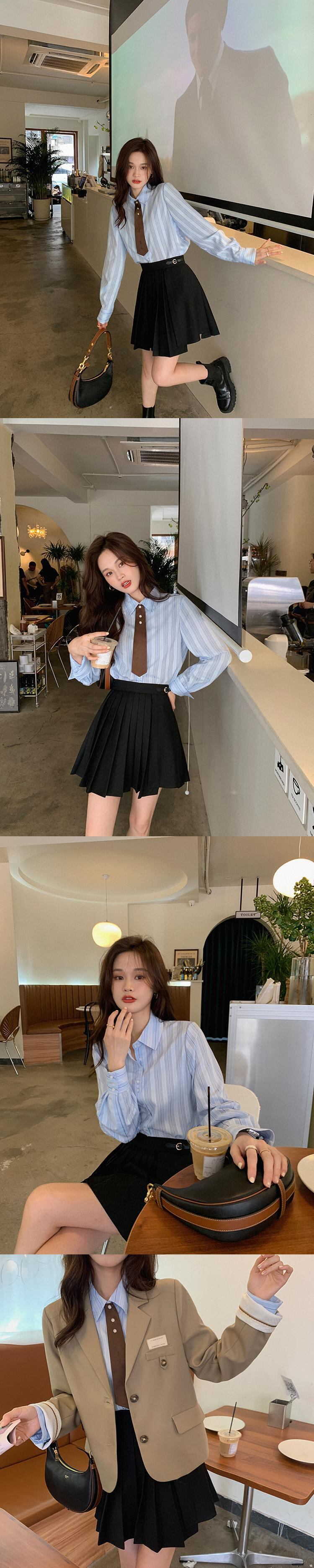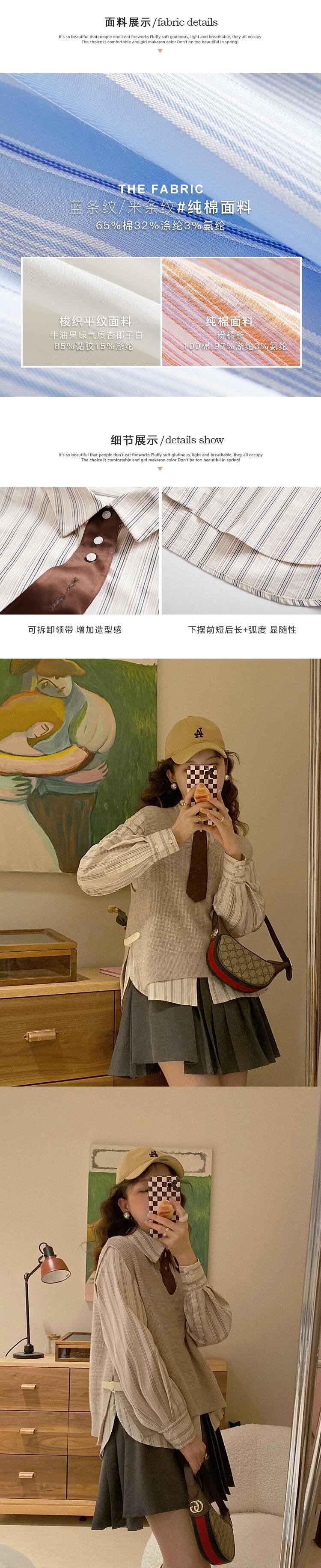 ミスシマリス[予備学生]フレンチレトロストライプシャツ初秋の気質トップスモールシャツ missi99293024848