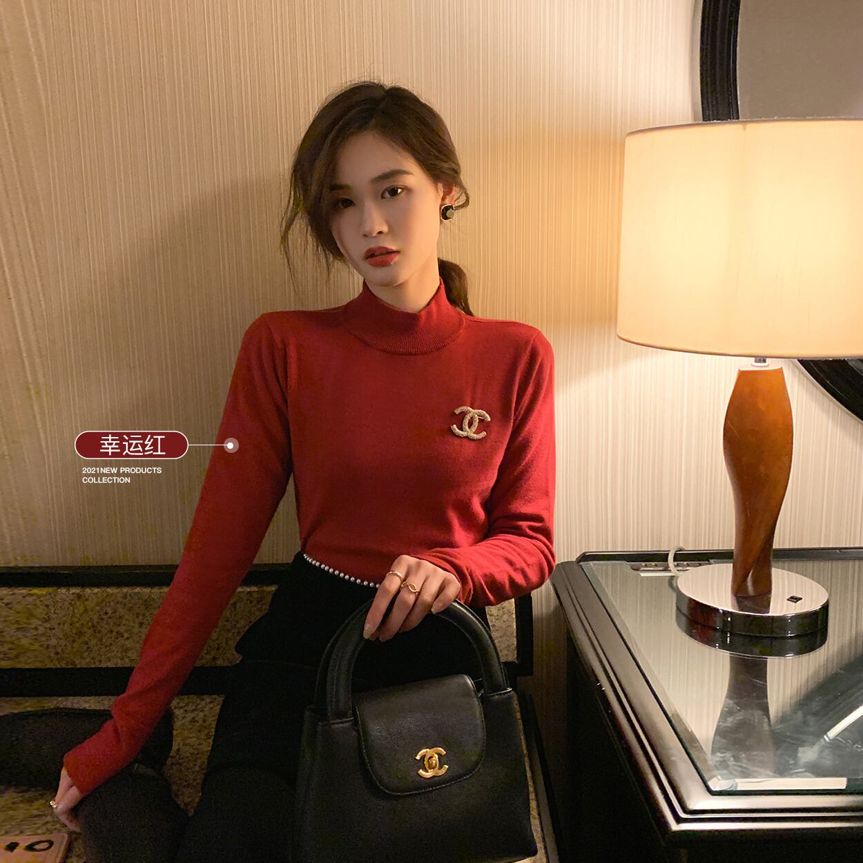ミスシマリスフェアリーボトミングシャツ女性2021年新しいハイネックスリム長袖セーターウエスタンスタイル missi17290033508