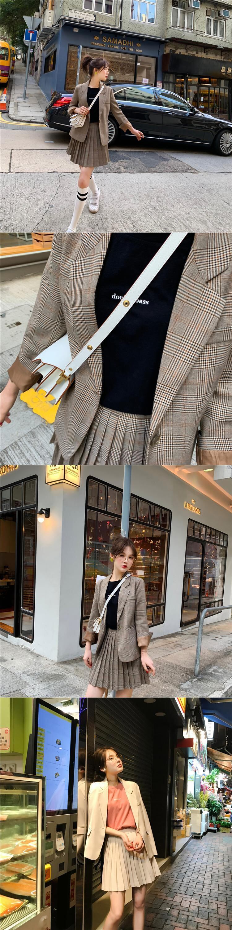 色:レトロな格子プリーツスカートスポット,レトロラティススーツスカートスポット,ベージュベージュプリーツスカートスポット