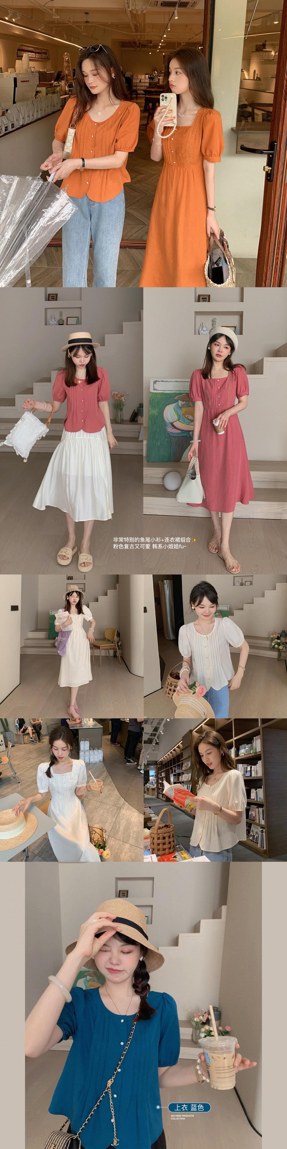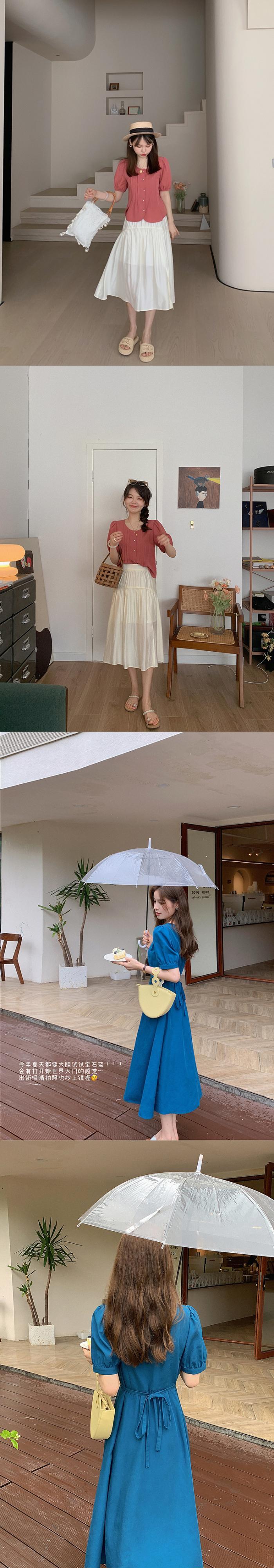 ミスシマリス[MMビーン]フレンチレトロスクエアカラーハイウエストスリムワンピース女性夏気質ロングスカート missi20117717070