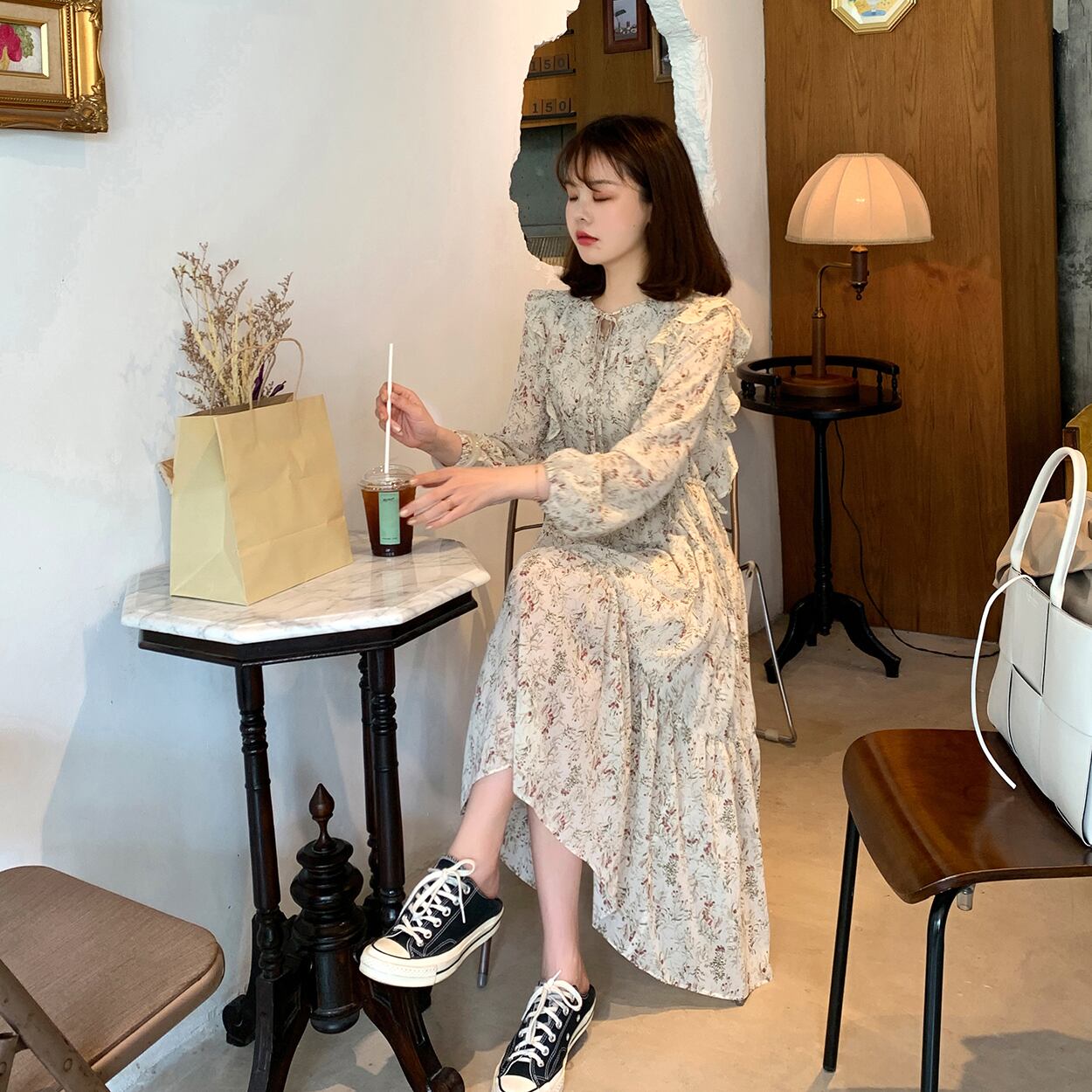 ミスシマリスシフォンフローラルドレス2020新しい女性の春と秋のルーズで薄いミドル丈のスカート missi30530492736