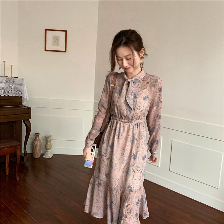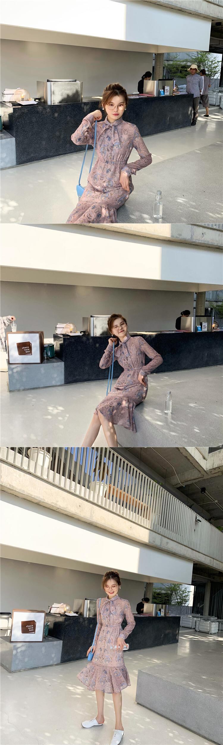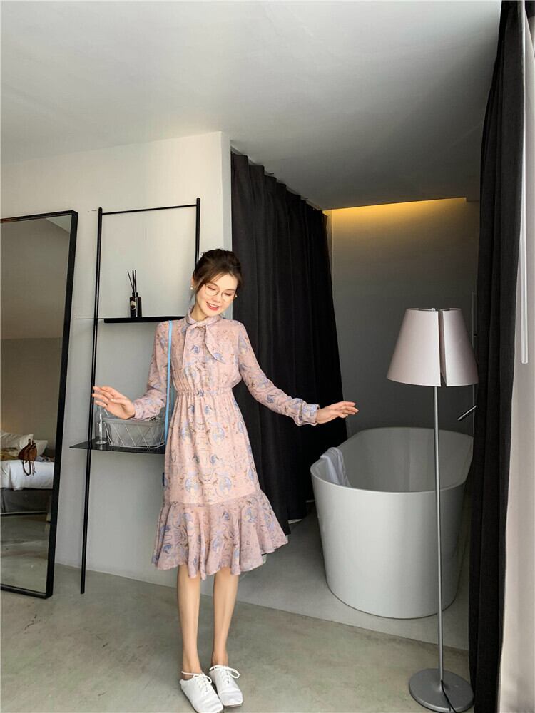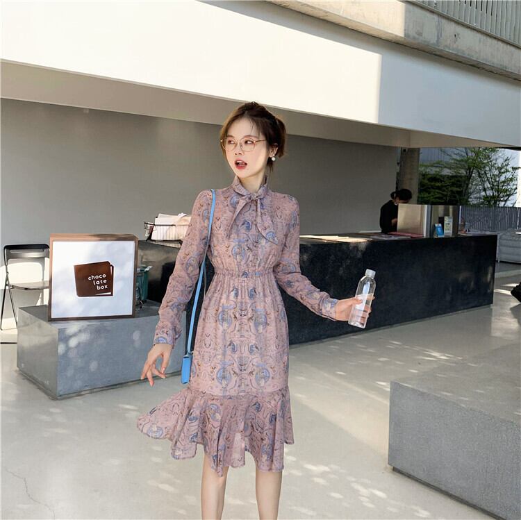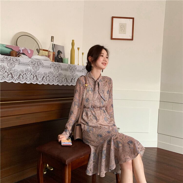 ミスシマリス、エキゾチックなヴィンテージの女性、小さな蝶ネクタイとエレガントな花のカラスの足のドレス missi51497224432