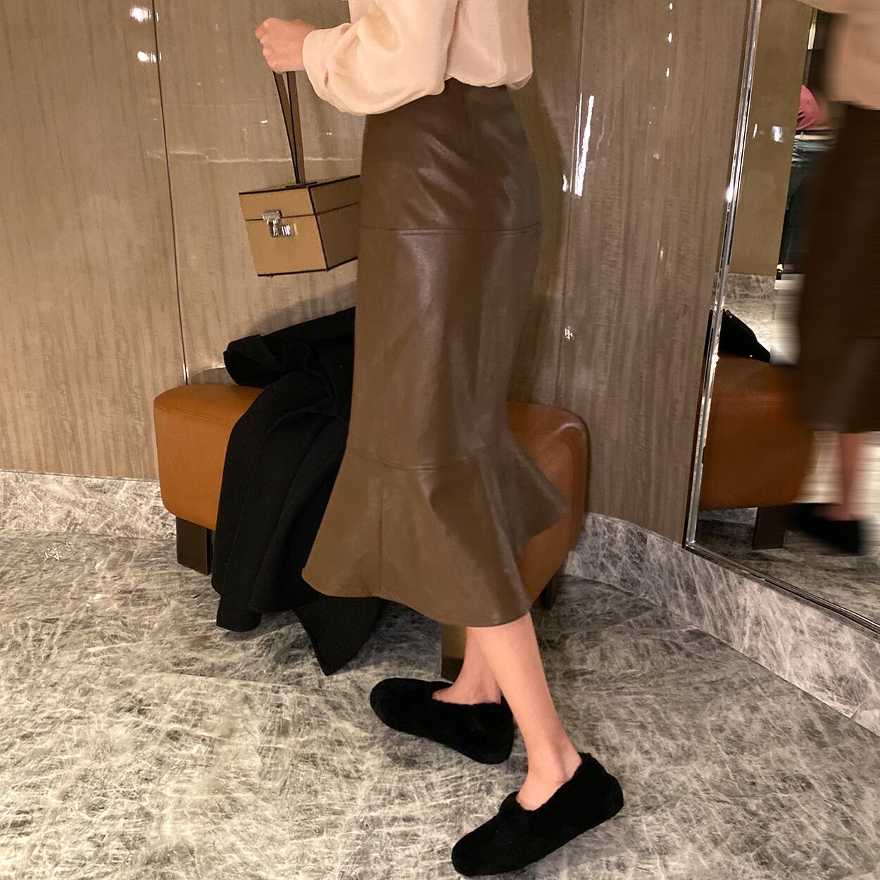 ミスシマリスハーフレングススカート2020年春ミドルレングスマーメイドスカート気質レザースカート missi94413991147