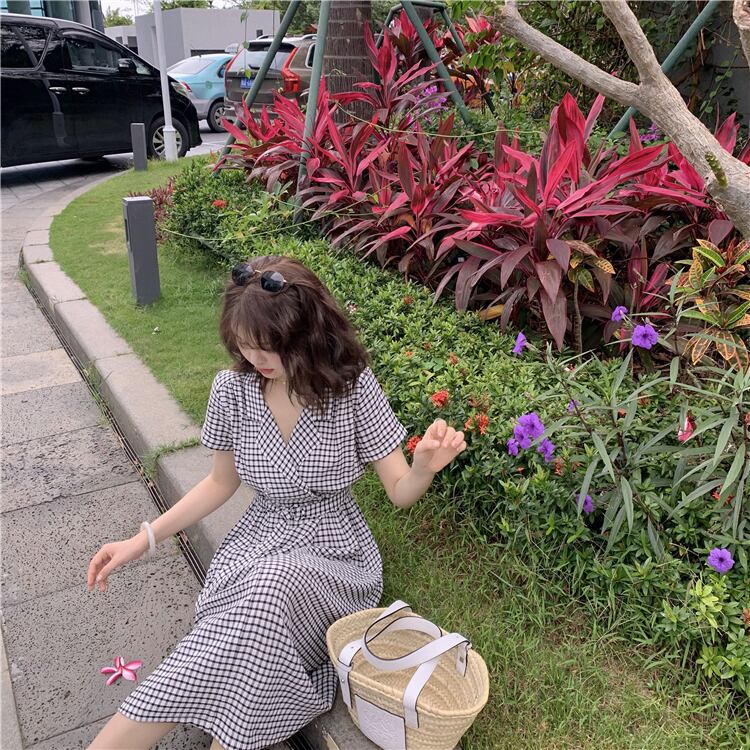 ミスシマリス[エンジェルラブズビューティー] Vネックバブルチェック柄ドレス2020ウエストウエストが薄かった missi61937644883