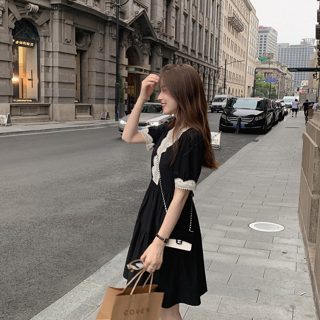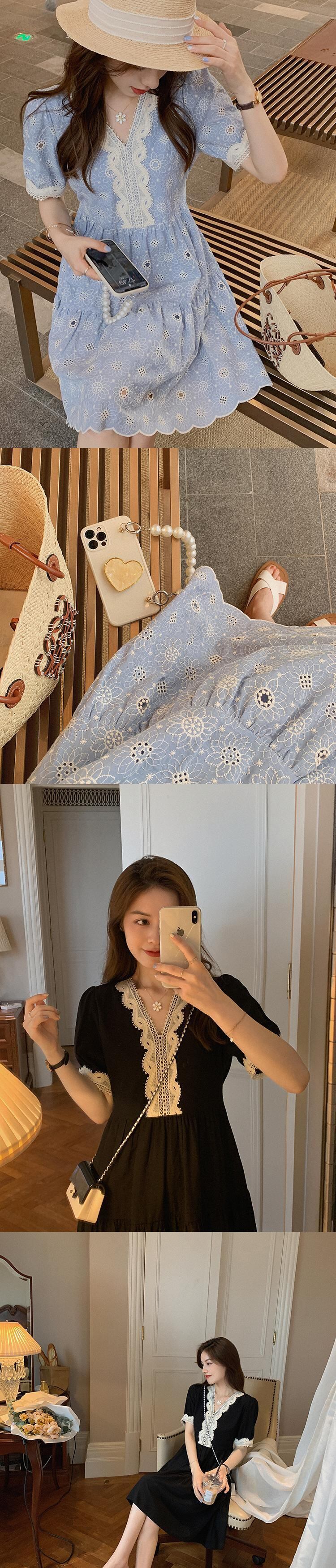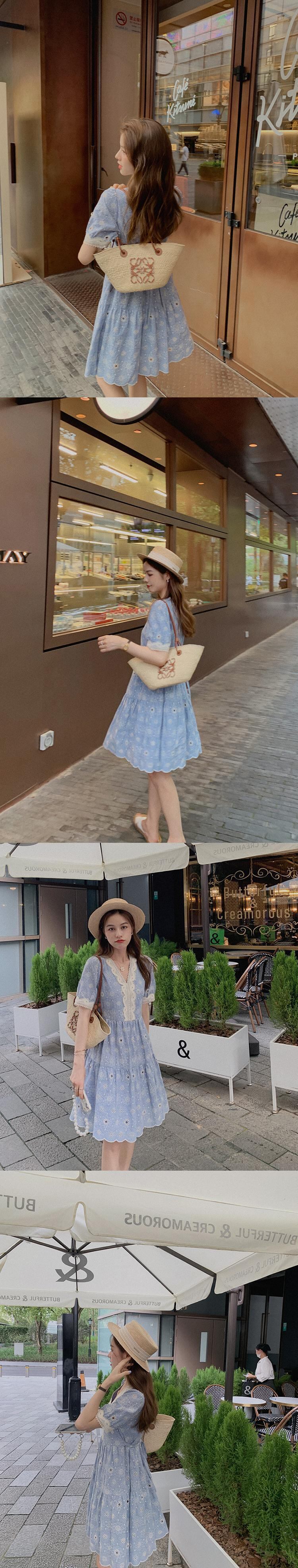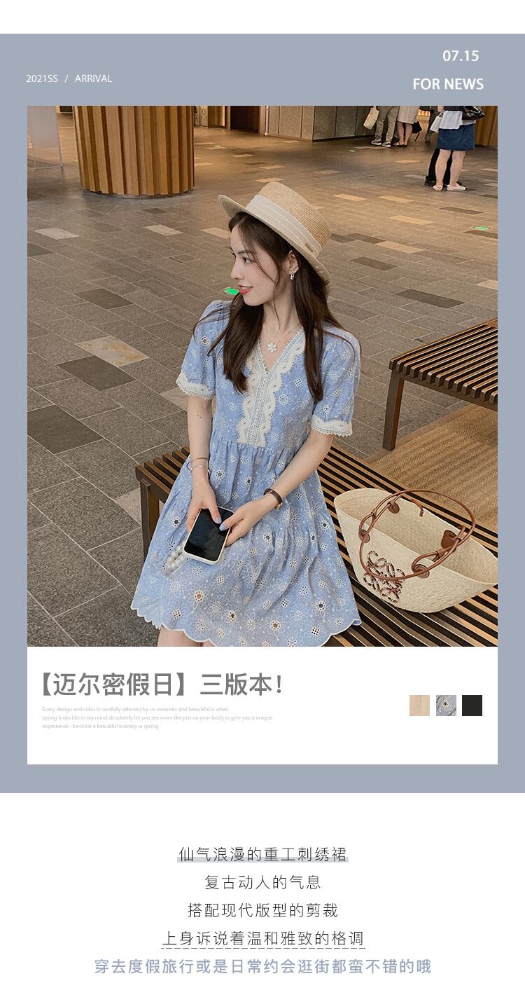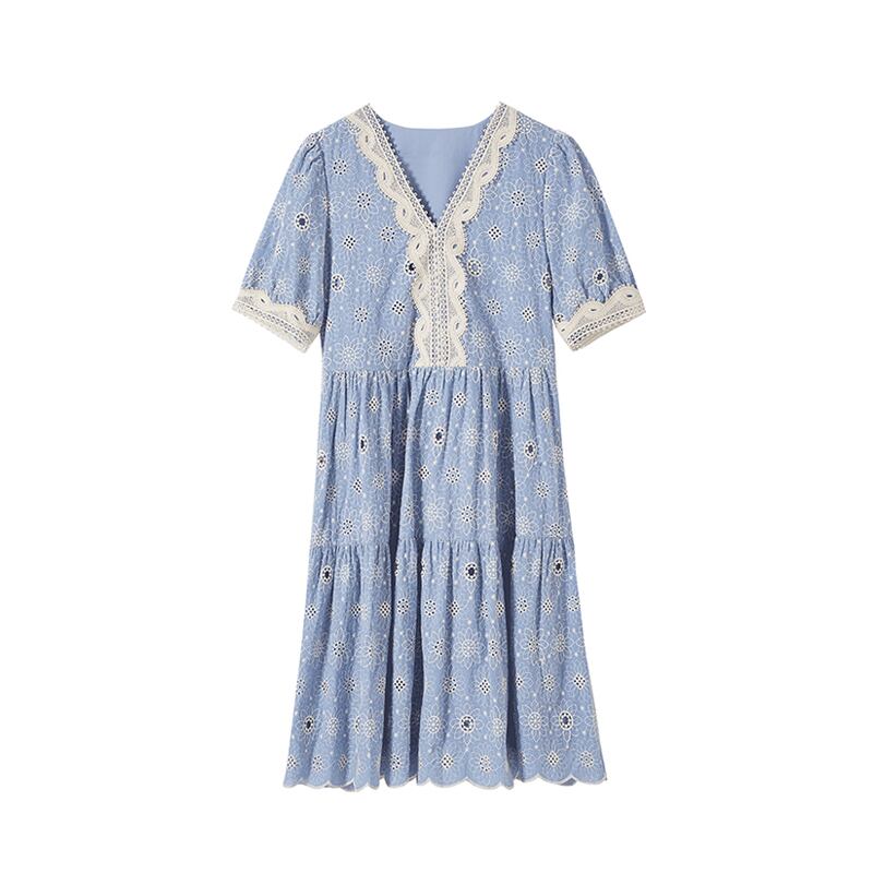 ミスシマリス[ミエルミホリデー]ブルーのVネック重工業刺繍入りドレスウエストは薄いナショナルスタイルでした missi46228721386