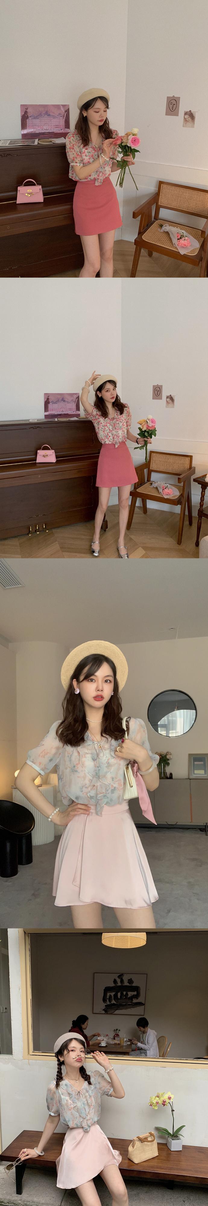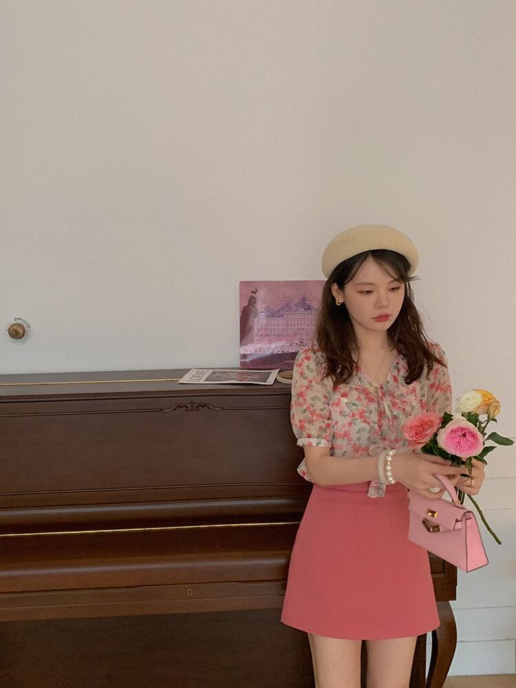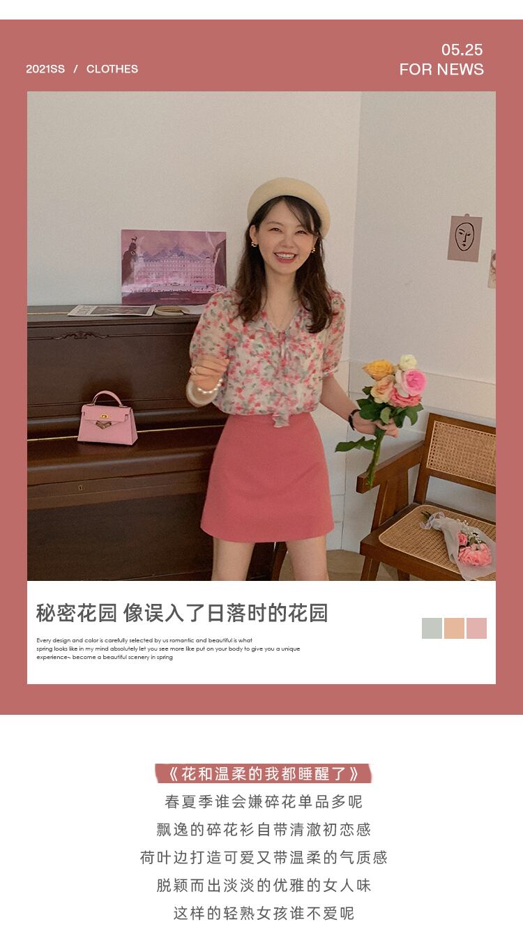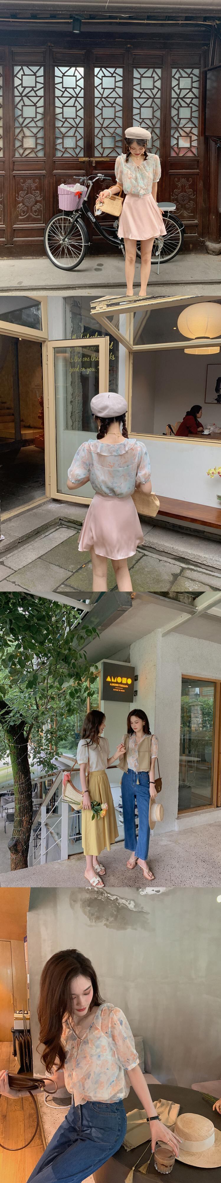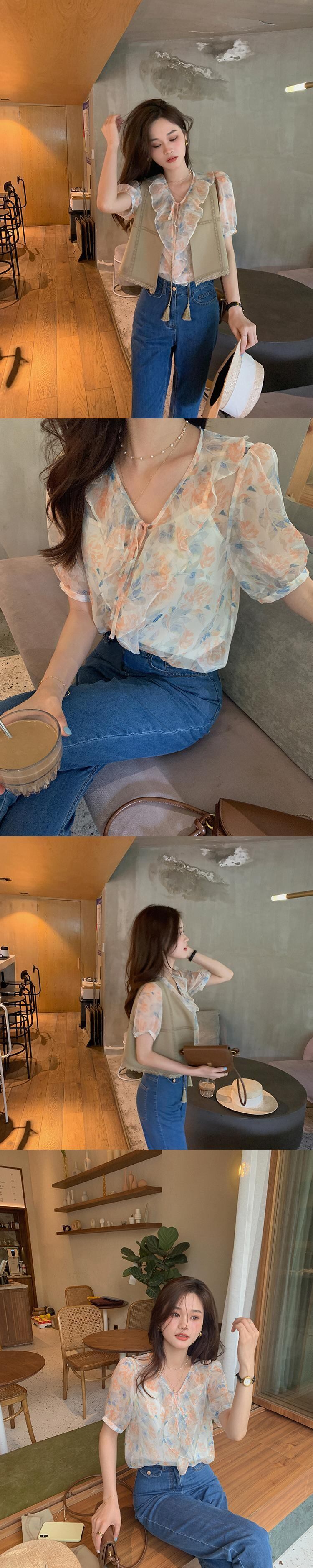 ミスシマリス【シークレットガーデン】フェアリーシフォンシャツフローラルVネックジェントル気質半袖トップス missi53512097614