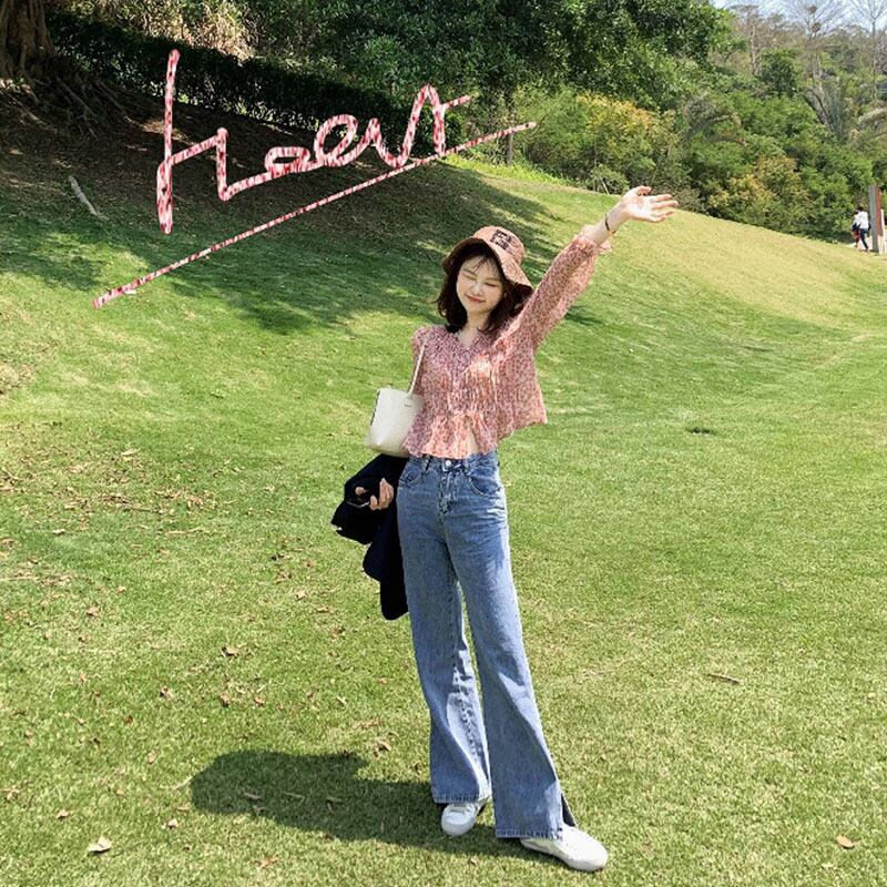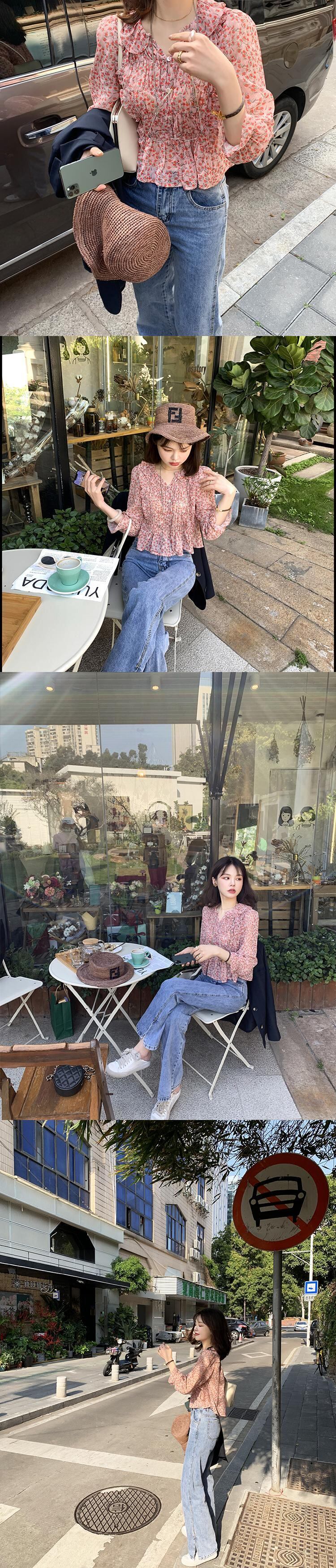 ミスシマリスクレースショートトップフェアリーブラウス2020年春夏長袖フローラルシフォンシャツレディース missi11355239359