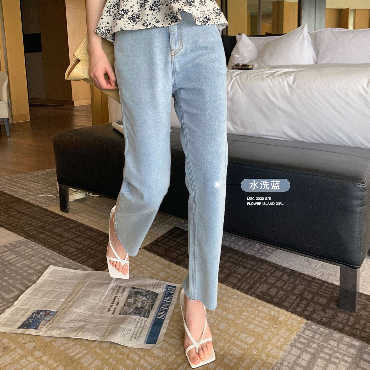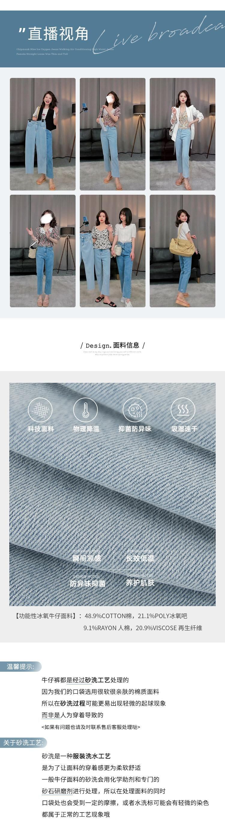 ミスシマリス、薄くて薄いアイス酸素ジーンズ女性の夏のハイウエストストレートルーズワイドレッグは細くて背が高かった missi27547161843