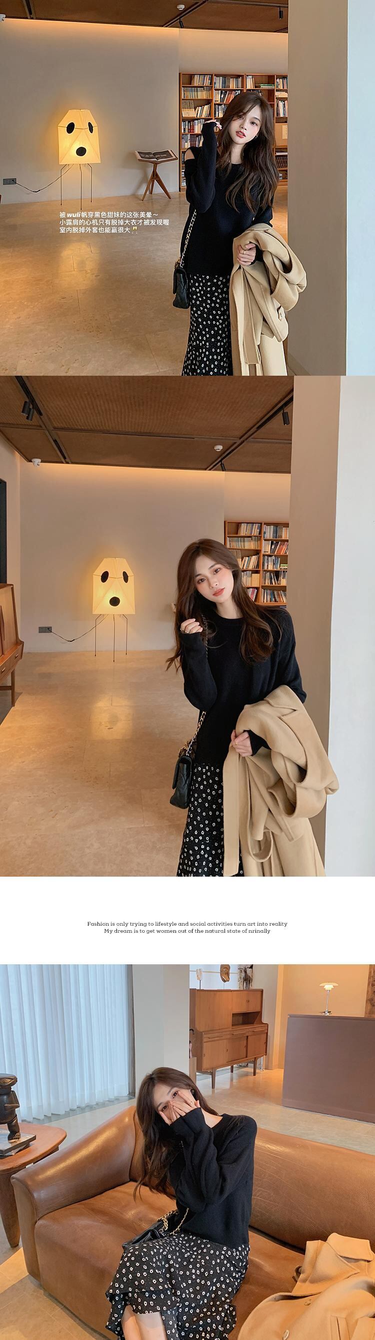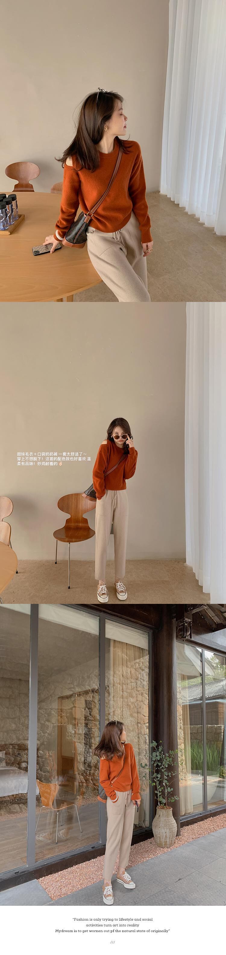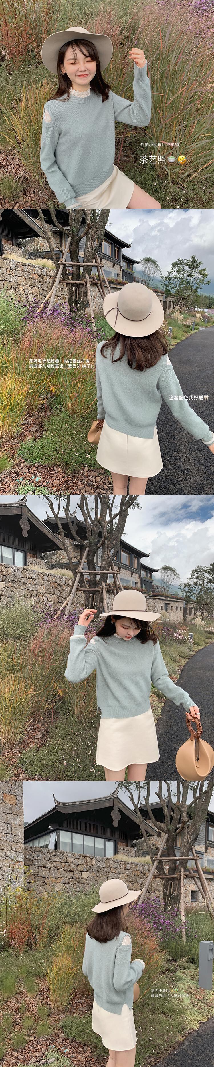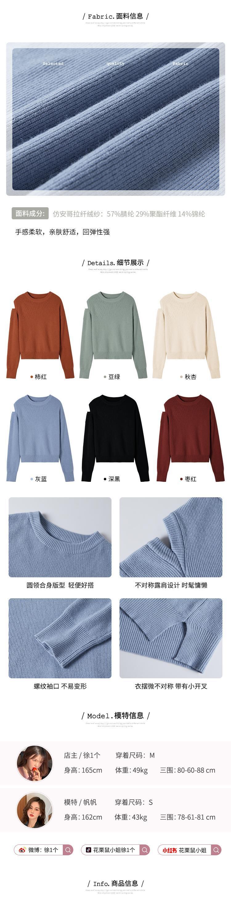 ミスシマリスプルオーバーオフショルダーセーターレディース秋冬ウェアレイジースタイルオールマッチルーズフィット長袖シャツ missi5779778046