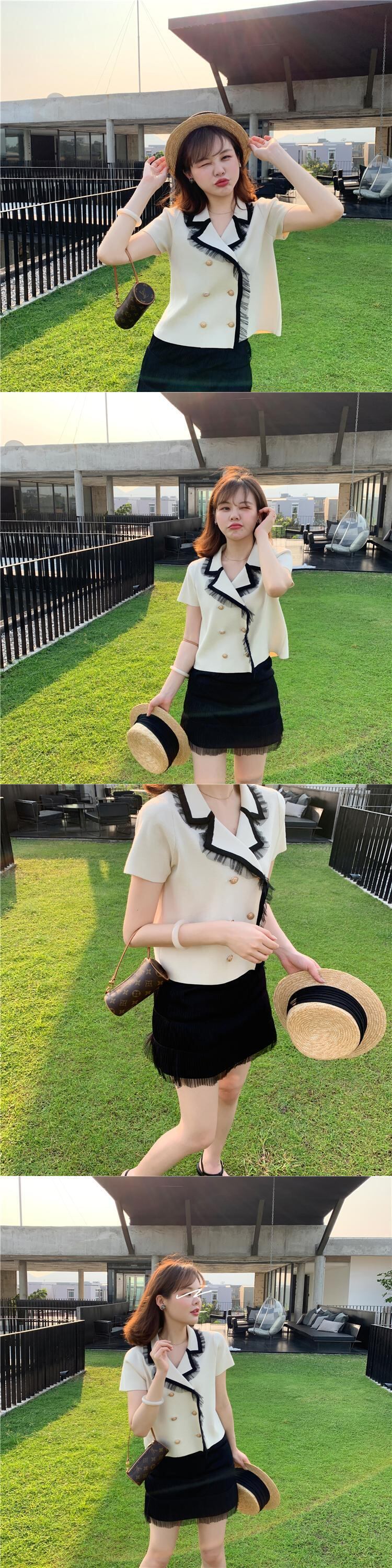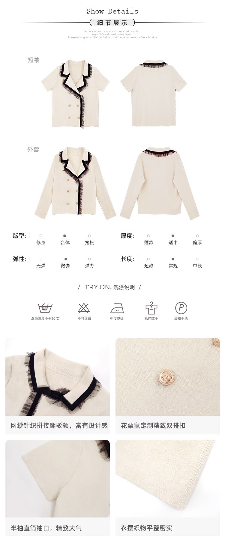 ミスシマリスニットカーディガン、コントラストカラー+スプライスメッシュ、エレガンス、ジェントル missi88409371896