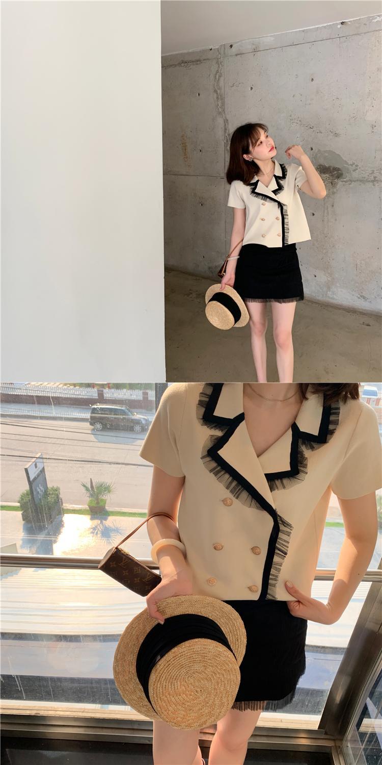 色:黒と白の長袖トップ,黒と白の半袖トップ