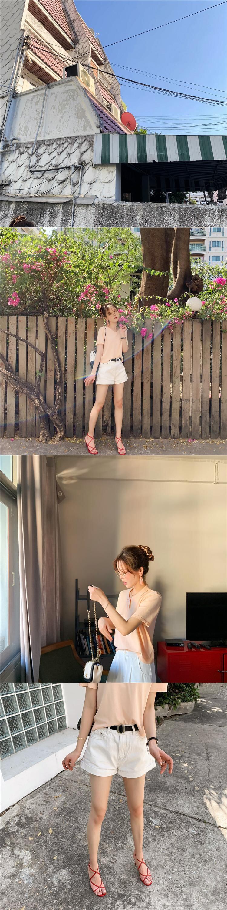 ミスシマリスネットレッドイン半袖Tシャツ女性BF香港スタイルルーズニットボトミングシャツ missi81814967363
