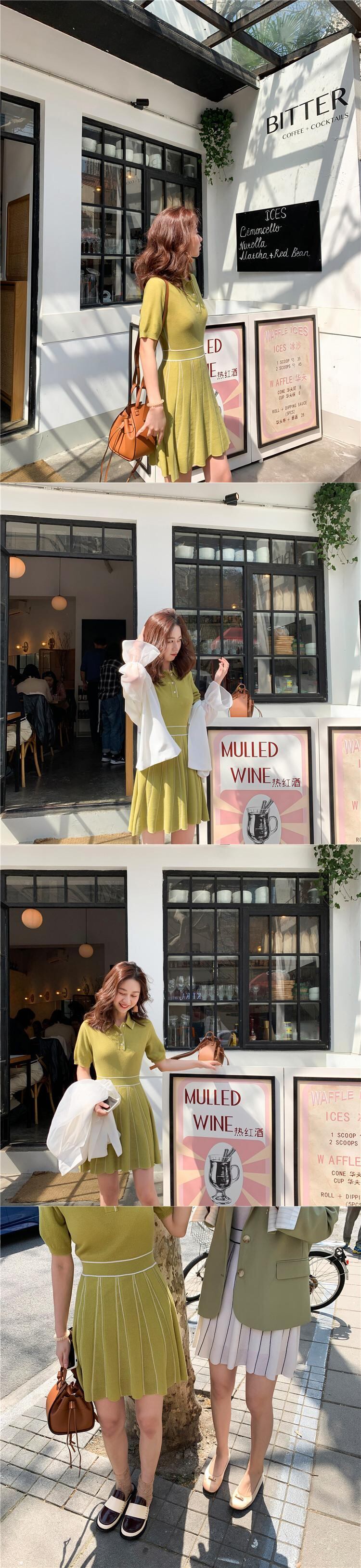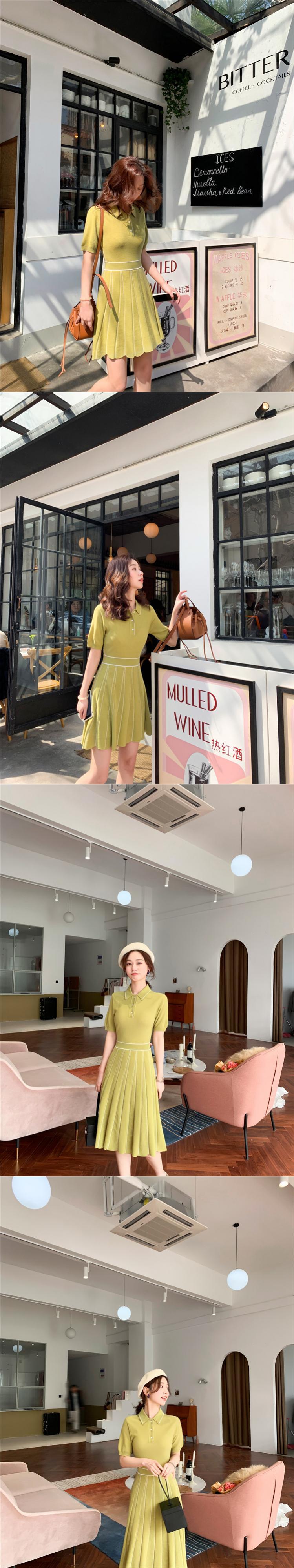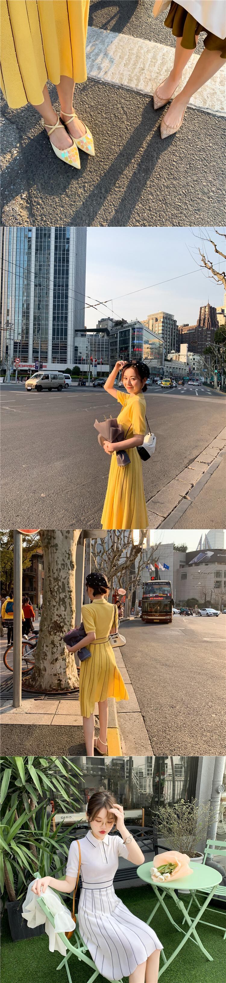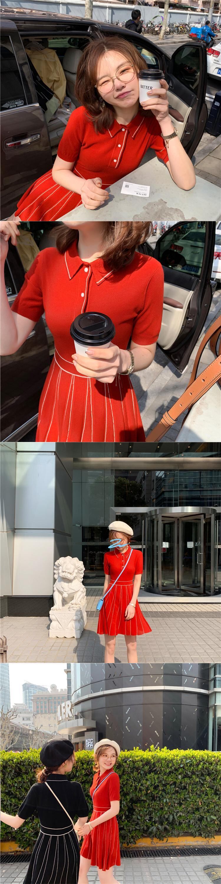 ミスチップマンク春2019ニットドレス春と秋の妖精の甘いポロネックネットレッドスカート missi75643250095