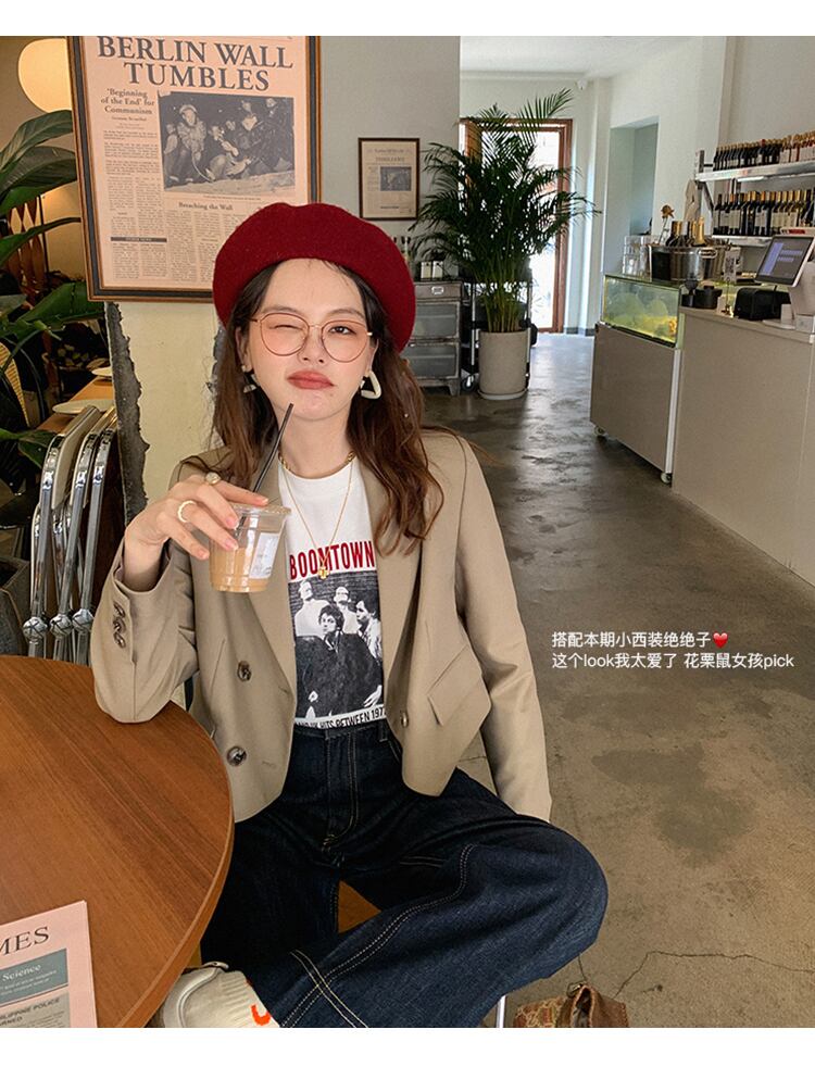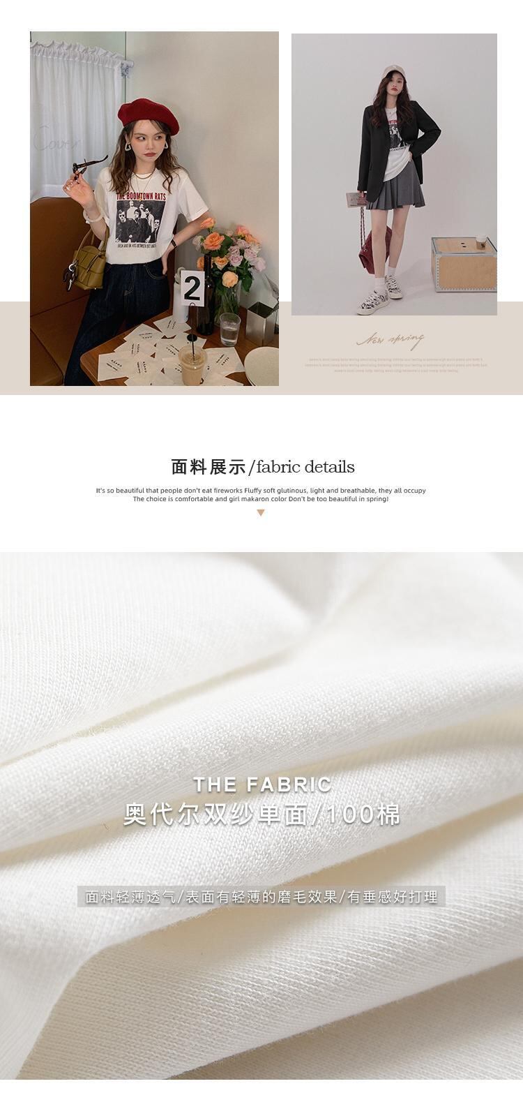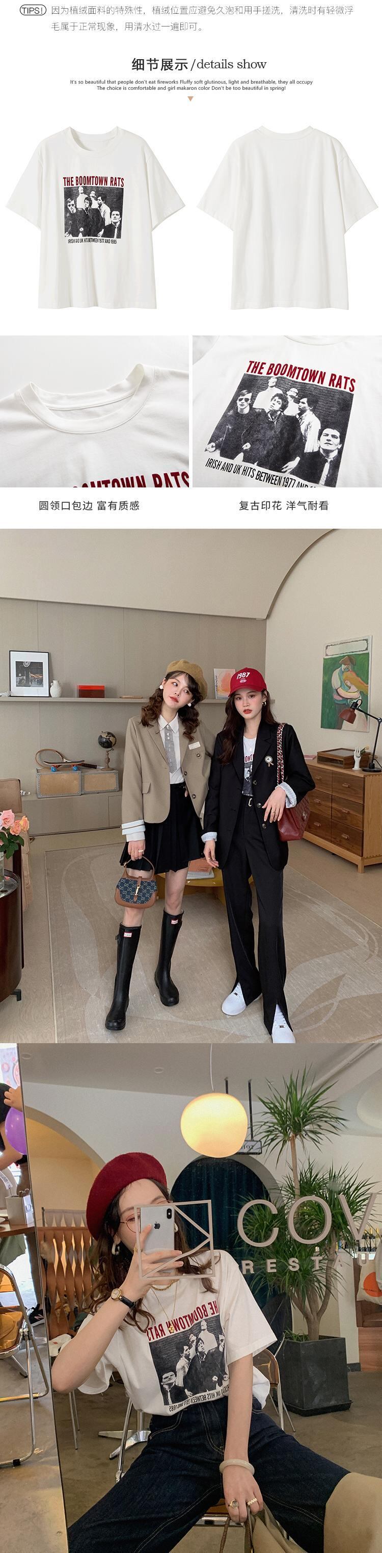 ミスチップマンク【Moviet】半袖スウィートクールサマー薄手レトロラウンドネックルーズプリント人気ホワイトTシャツ missi56124151335