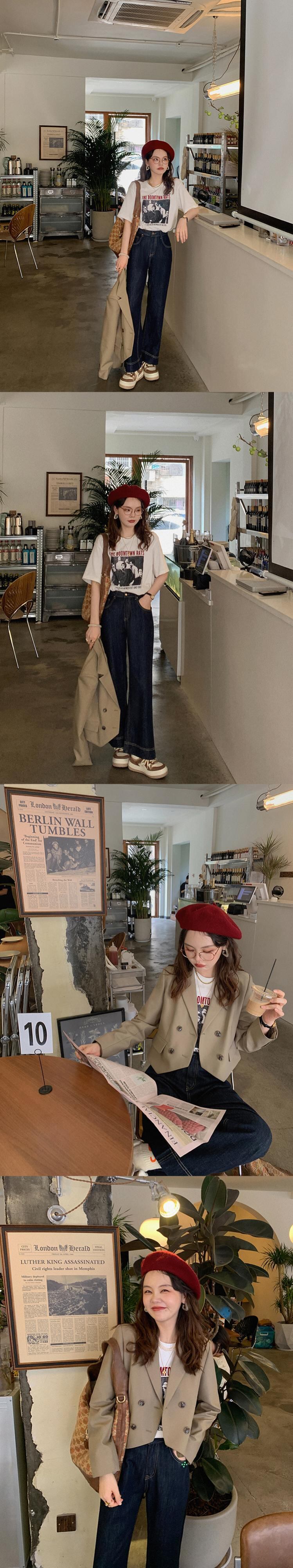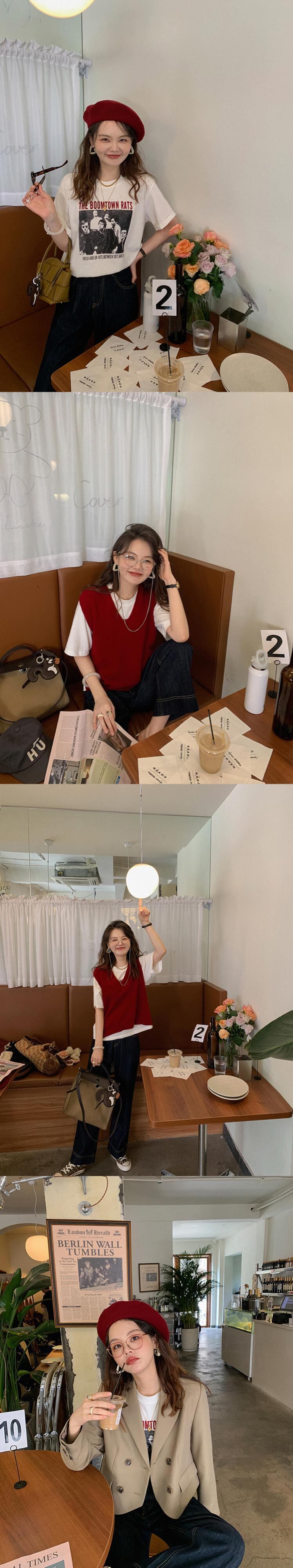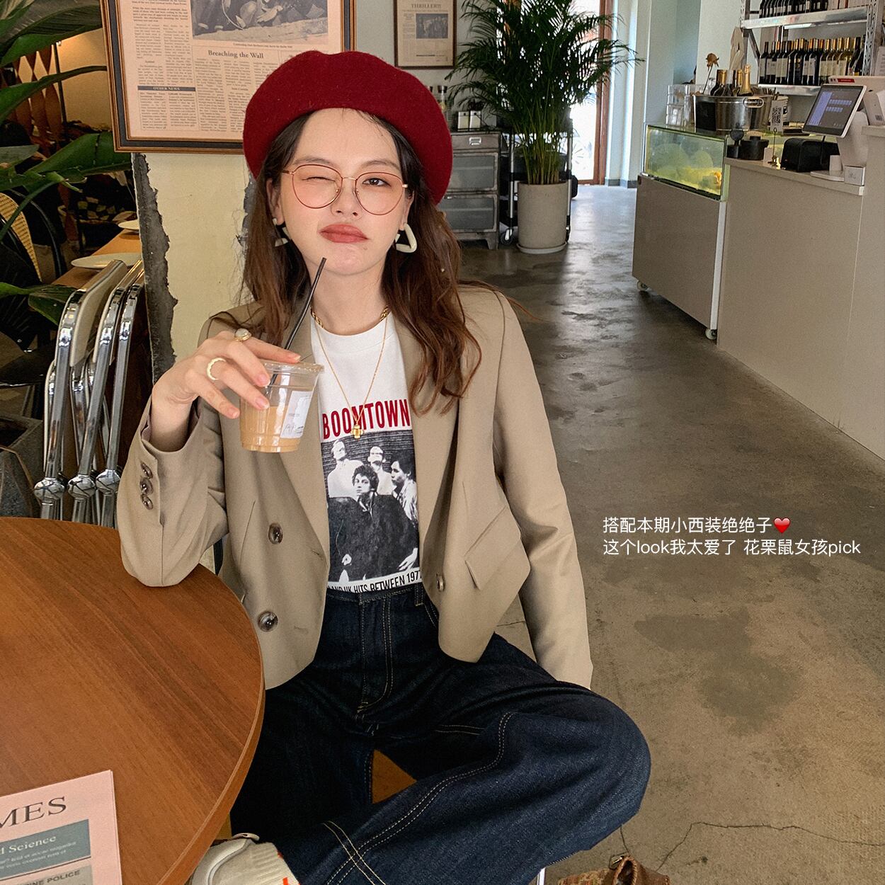 ミスチップマンク【Moviet】半袖スウィートクールサマー薄手レトロラウンドネックルーズプリント人気ホワイトTシャツ missi56124151335