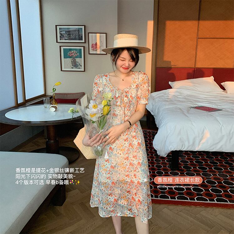 ミスシマリスフローラルドレス2021年夏フレンチティーブレイクドレスウエストシフォンスモールショートロングスカート missi60020069141