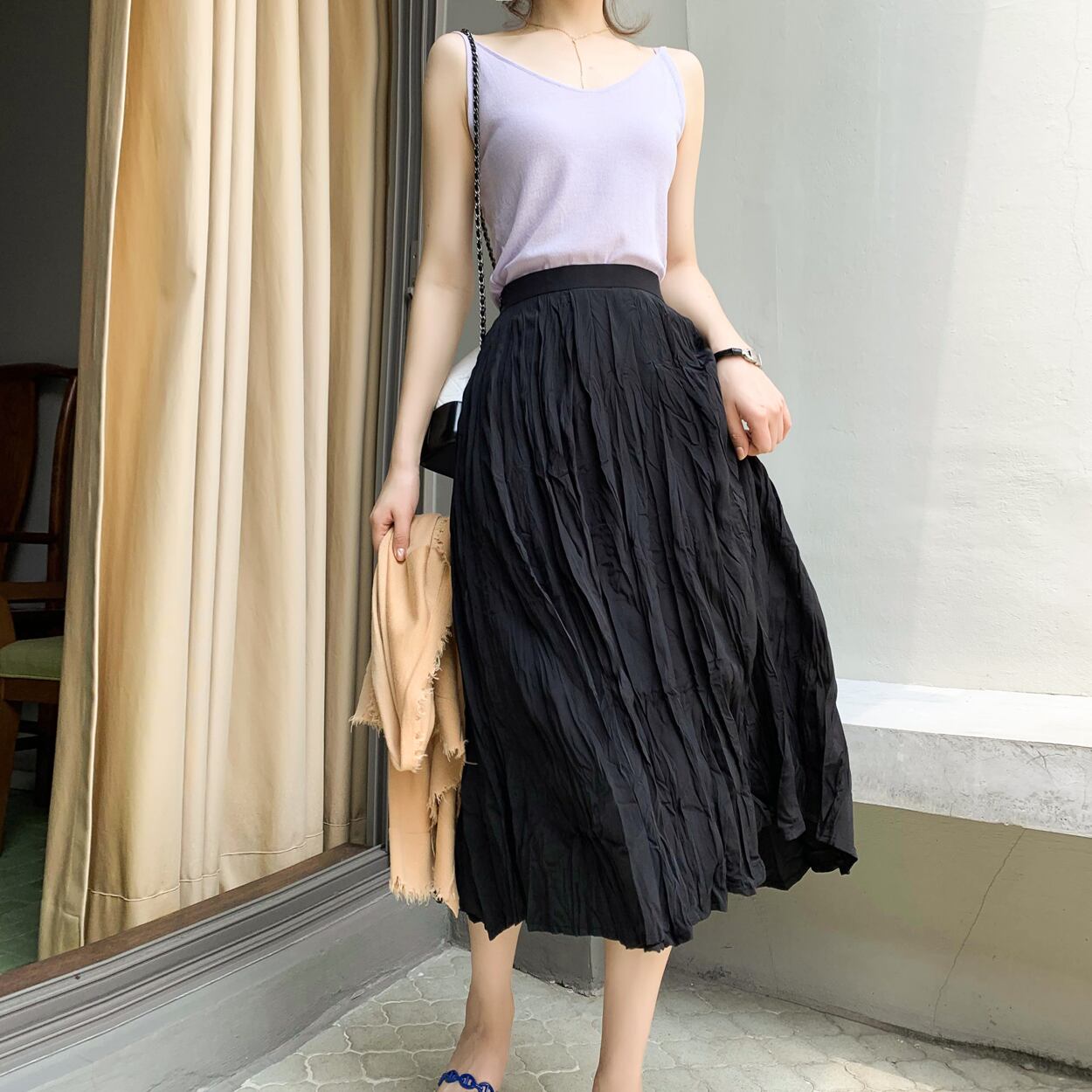 ミスシマリススラブテンセルコットンしわのあるフェアリースカート2020春と秋のウエストスカート missi29318498250