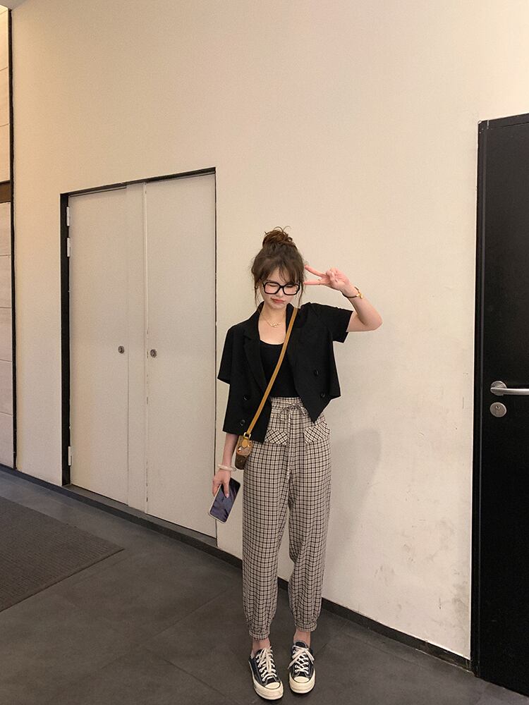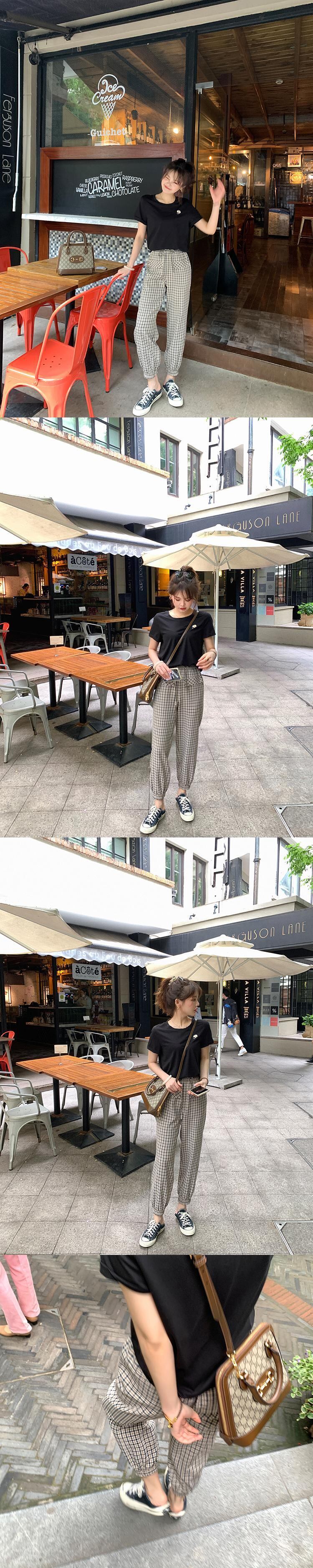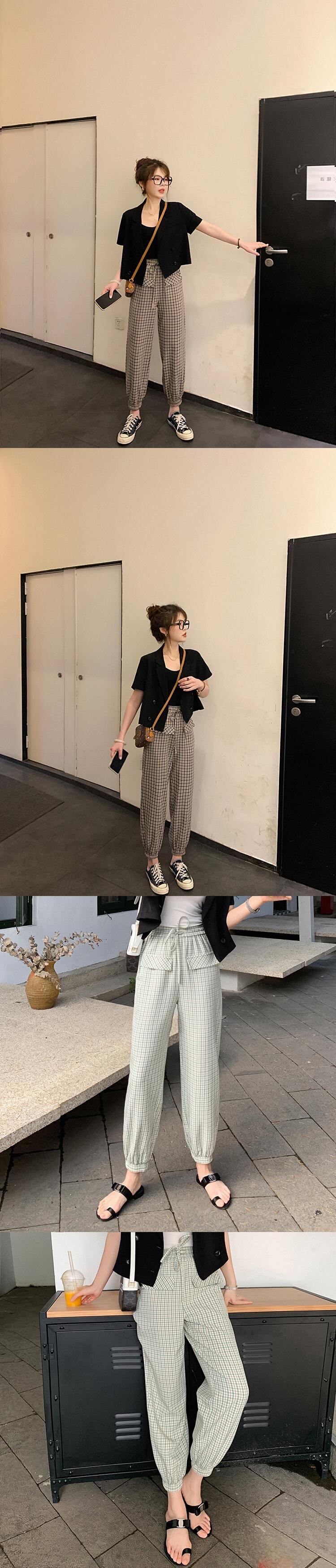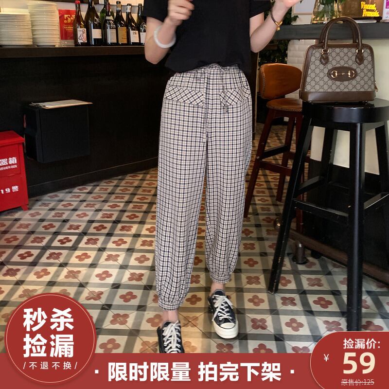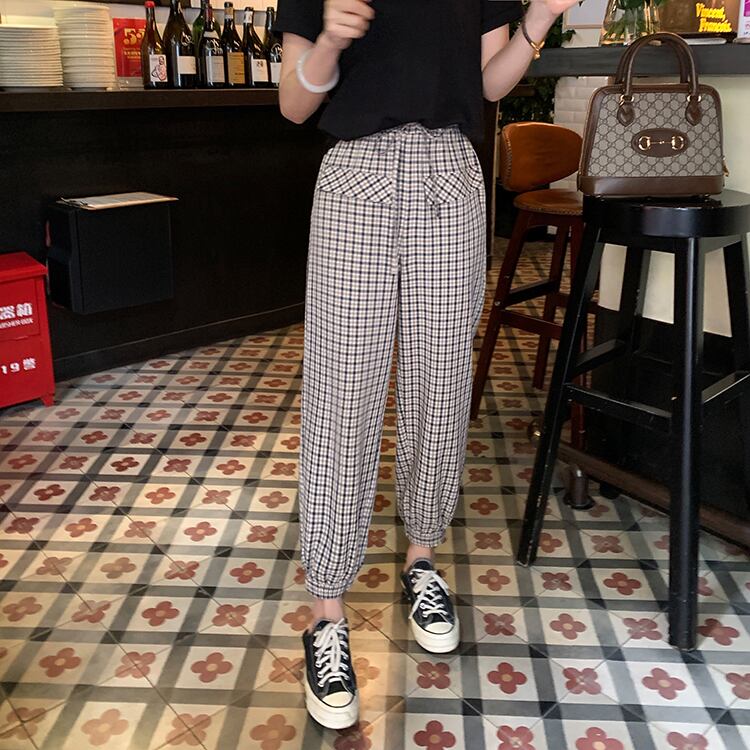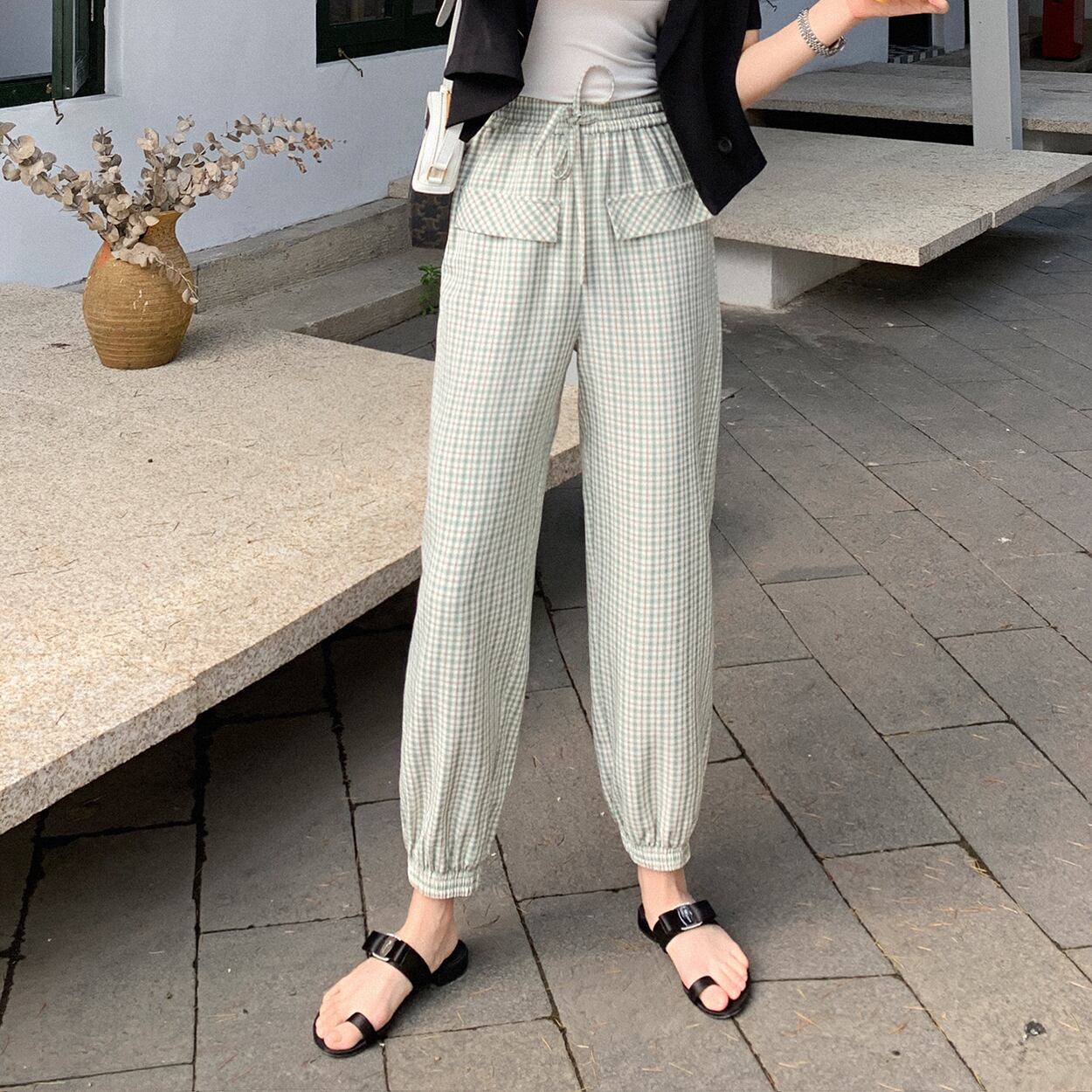 ミスシマリスチェック柄パンツサマールーズシンパンツウィメンズ2020シンオールマッチパンツ missi21109827001