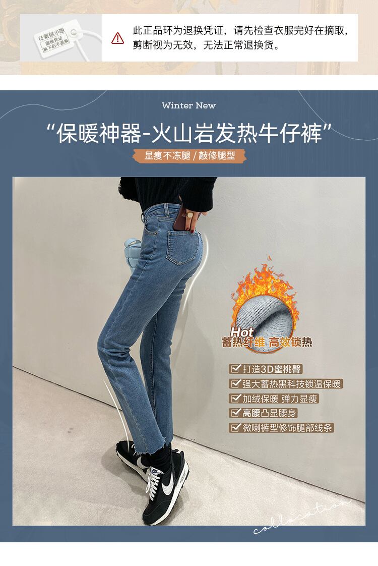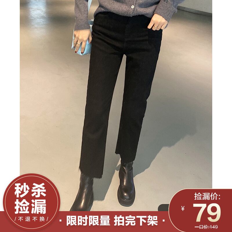 ミスシマリスファーリージーンズ女性の冬のぬいぐるみウエストは薄いオールマッチタイトフィットワイドレッグフレアパンツでした missi49907181151