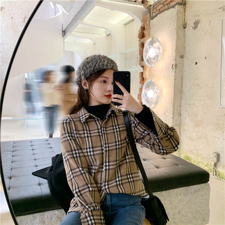 ミスシマリスチェック柄シャツルーズワイルドで薄いレトロウエスタン2020年春女性長袖シャツ missi54418938704
