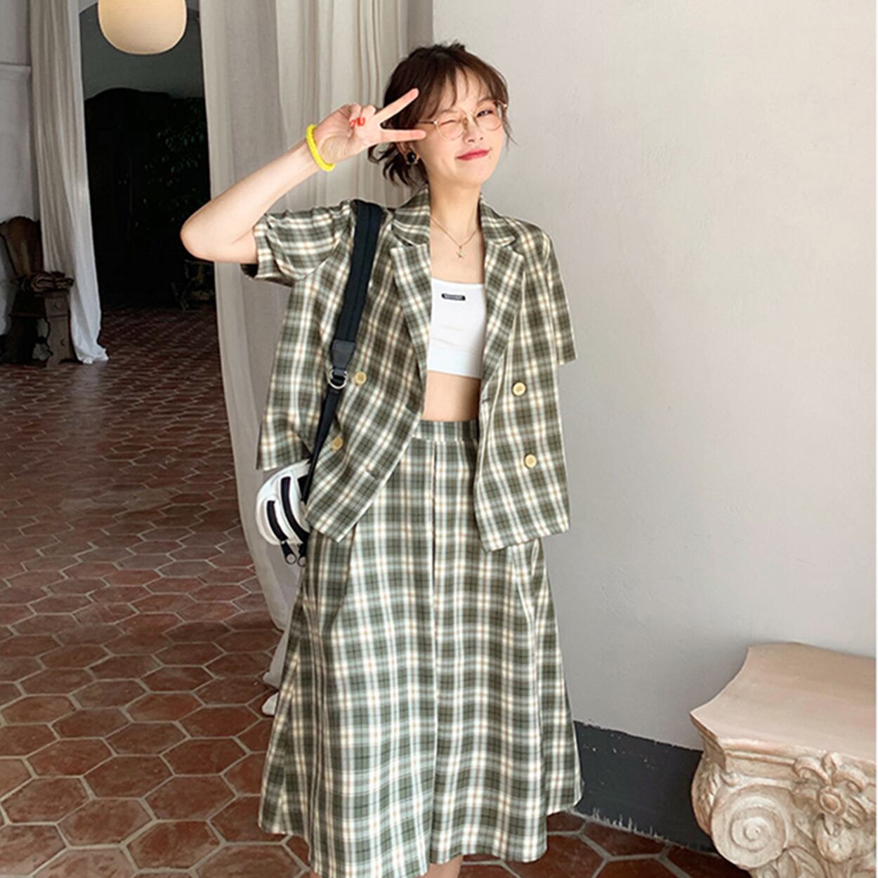 ミスシマリスをお勧めします!シマリスが見逃せないレトロなチェック柄スーツ missi68320137404