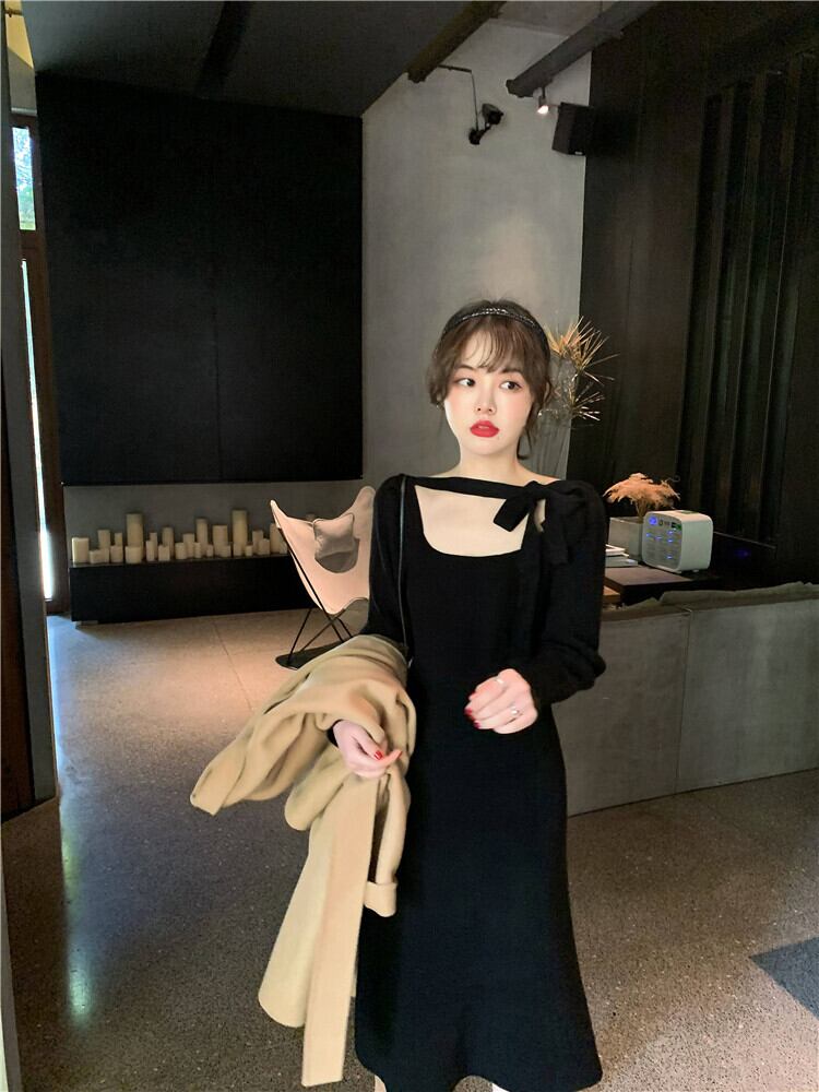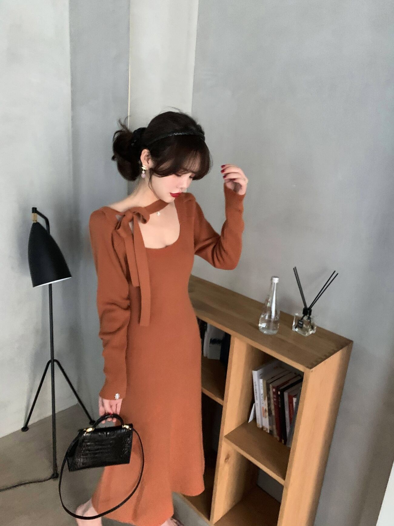 ミスシマリスニットドレス女性2020年春秋新しいレトロな薄くて小さいベーススカート missi79129013808