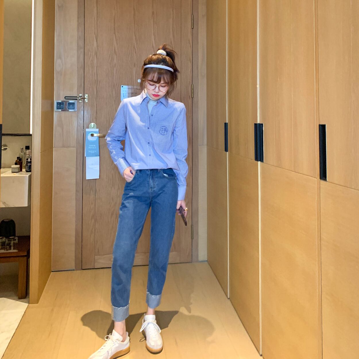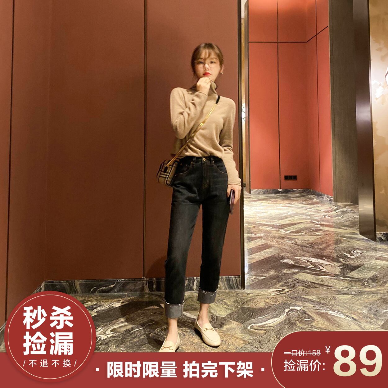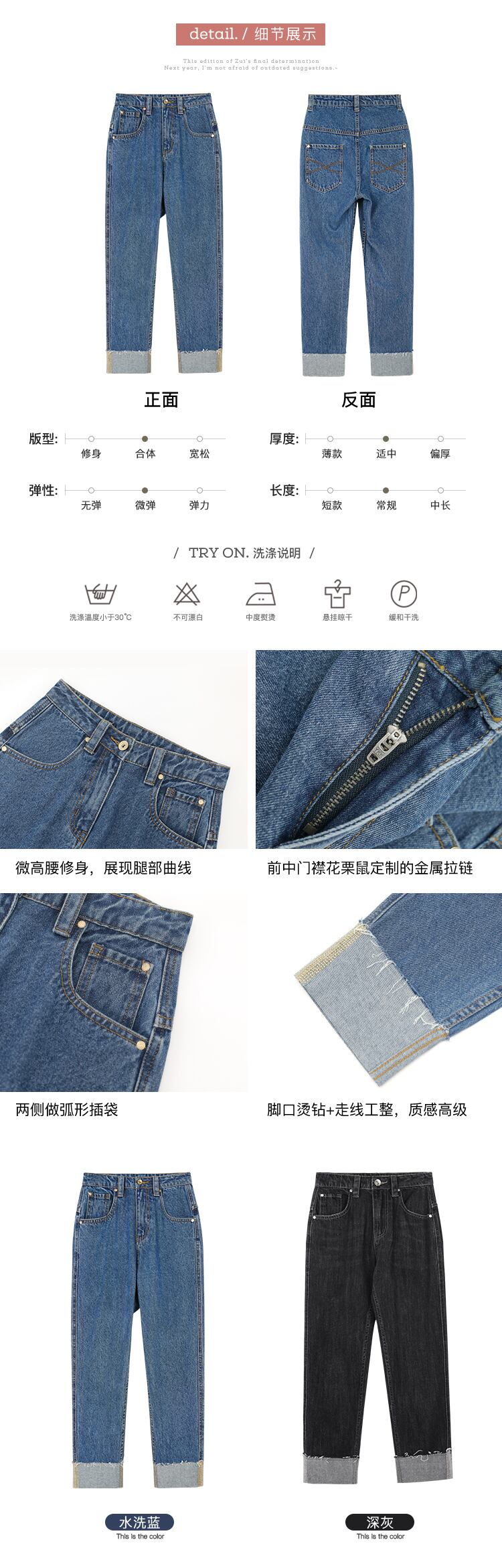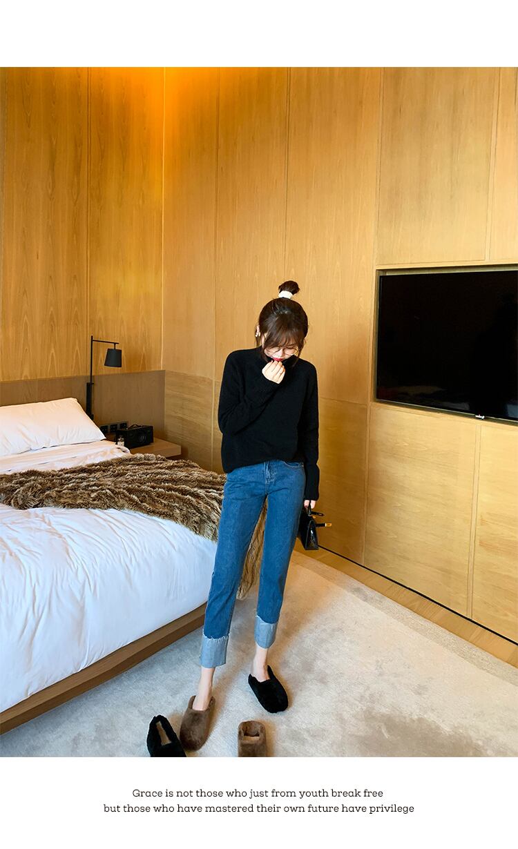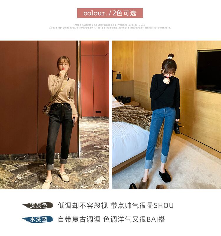 ミスシマリス、ジーンズもニッチなスタイルでデザインする必要があります、シボハイウエストテーパードカフスジーンズ missi19359371049