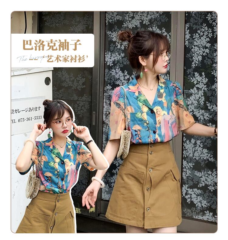 ヴィンテージのバロックスリーブアーティストシャツを着たシマリスさん missi98834692184