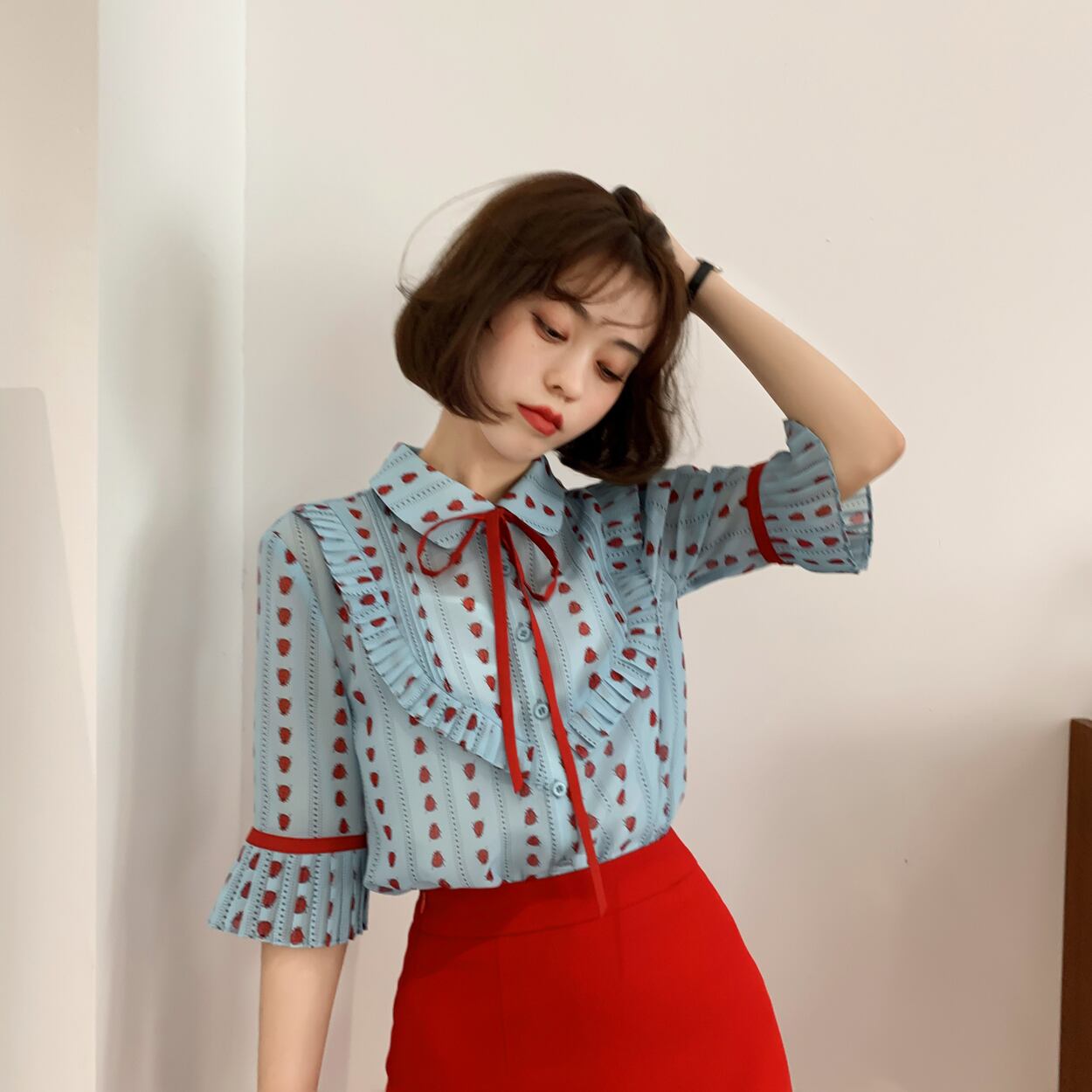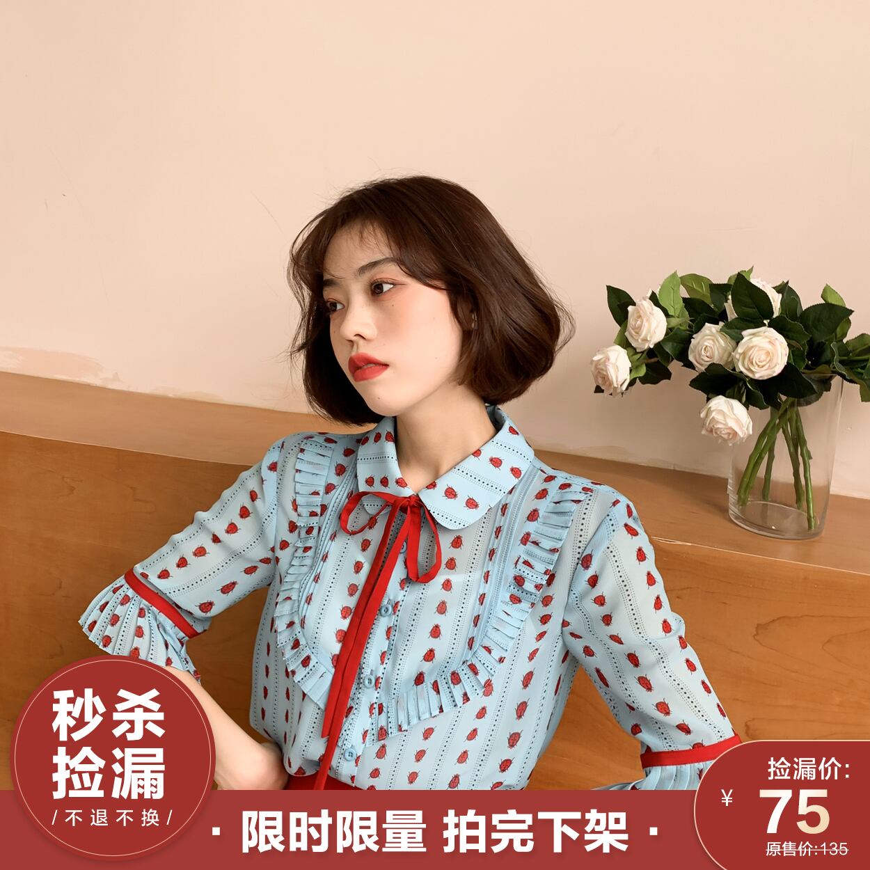 ミスシマリスの軽くて甘いコートスタイル!軽くて贅沢なレトロプリーツレースアップスモールシャツが付属 missi79778175475