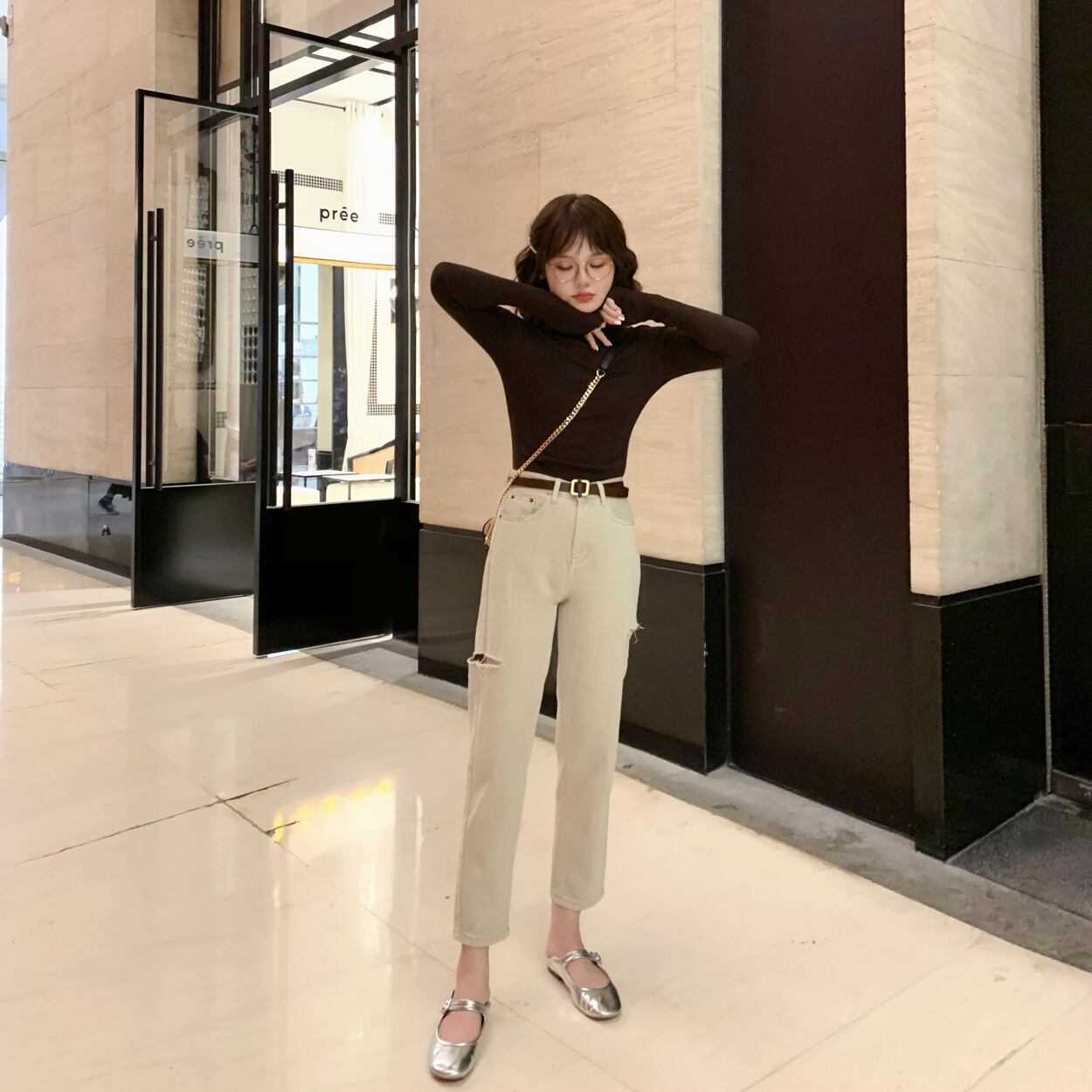 ミスシマリス、ねえ、通り全体で最もクール。つや消しのウォッシュドサイドリップドジーンズでベルトを手に入れましょう。 missi94812075852