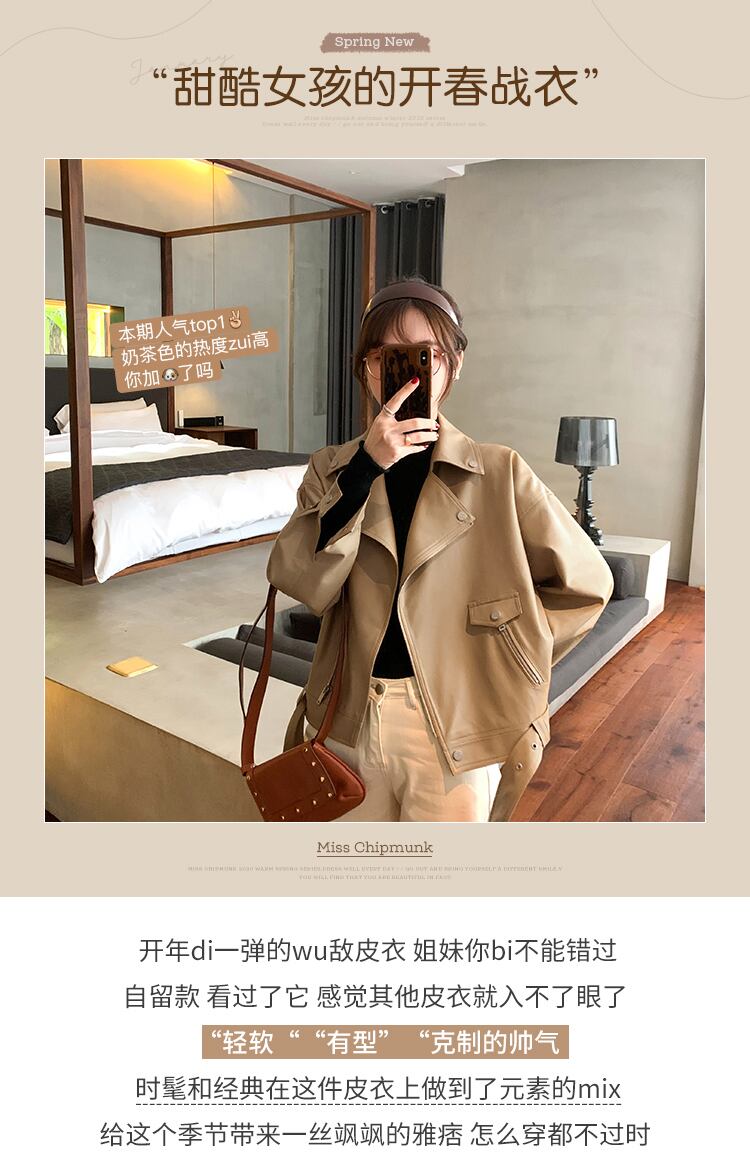 ミスシマリス機関車レザージャケット女性ショートショートショートルーズブラックレトロpuレザージャケット春 missi48316391574