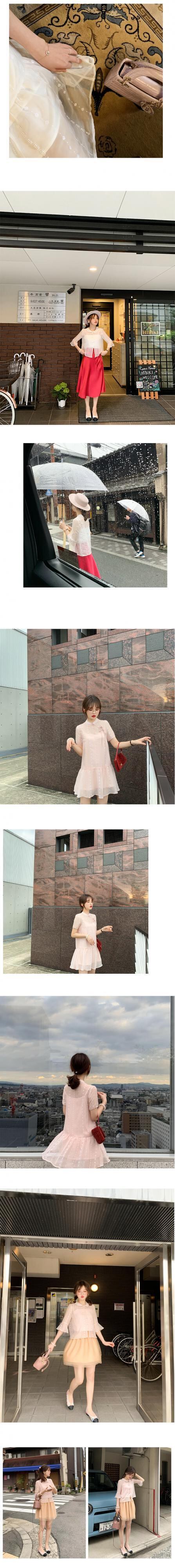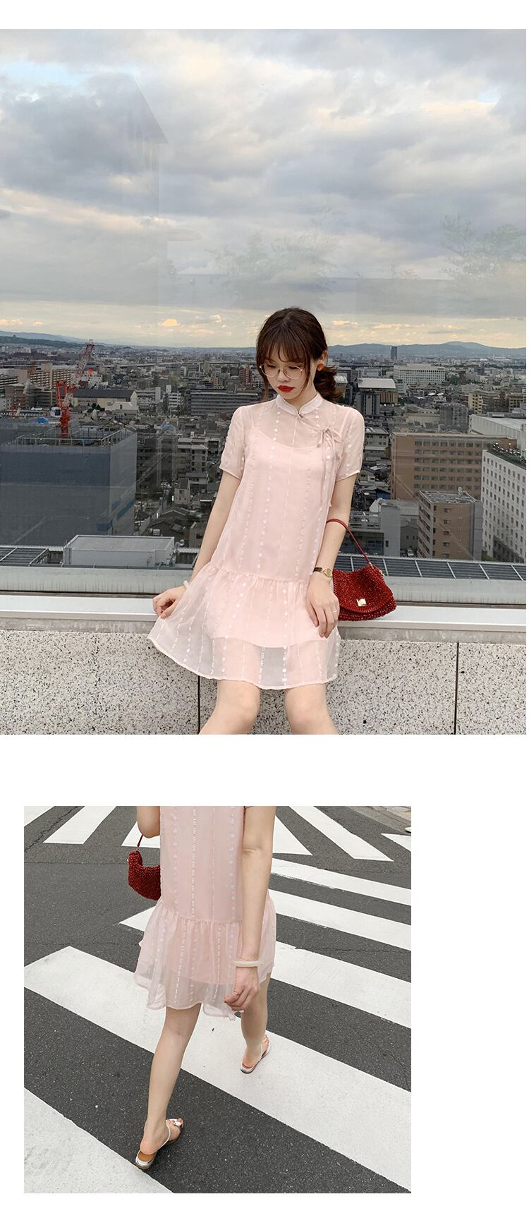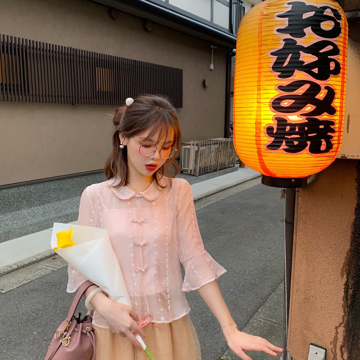ミスシマリスシフォンシャツウエスタンスタイルのスーパーフェアリー小さな新鮮なピンクのシフォンブラウス女性の夏のトランペットスリーブショートチャイナドレス missi83597925405