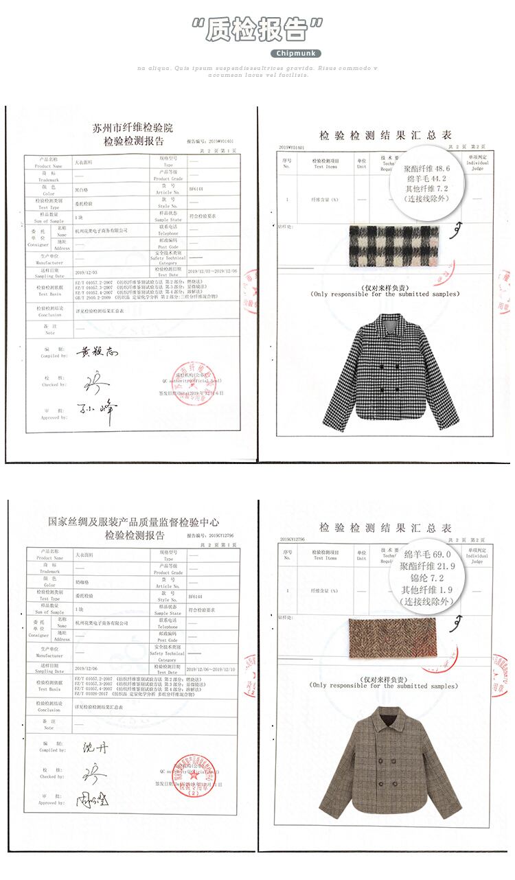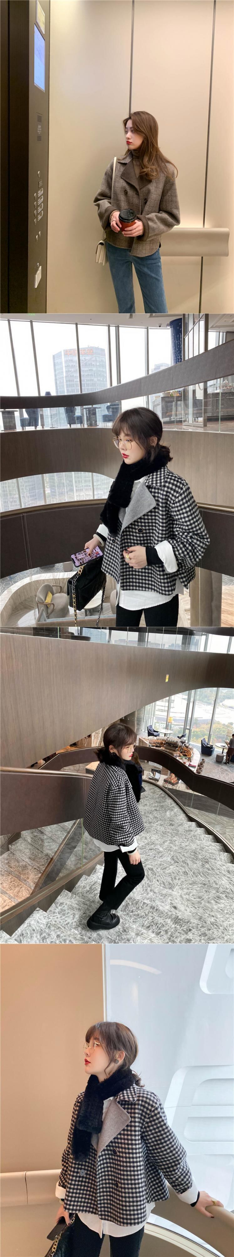 ミスシマリスショートウールスーツジャケット女性冬レトロ格子縞小さなフィギュア薄いウール両面ウール布 missi24947051190