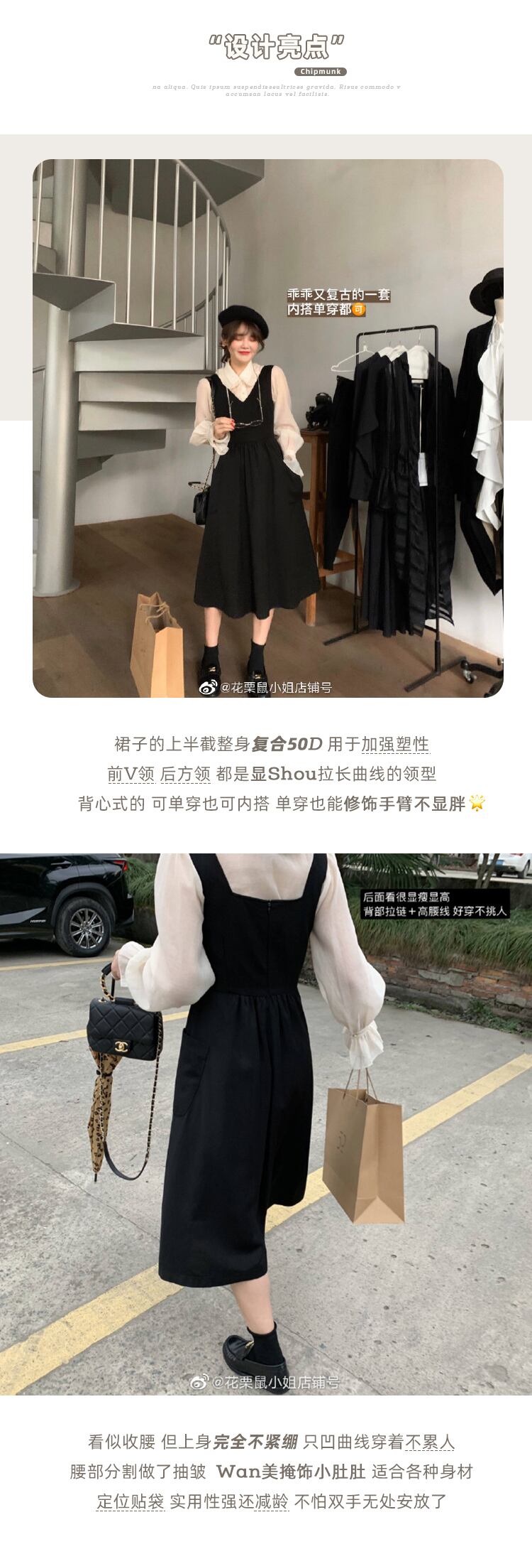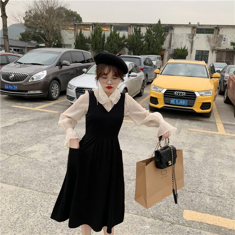 ミスシマリスブラックベストドレス女性の膝の上の計画ベース2020年春の小さなドレス missi39692168845