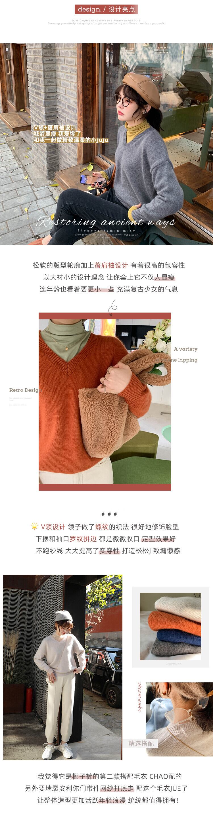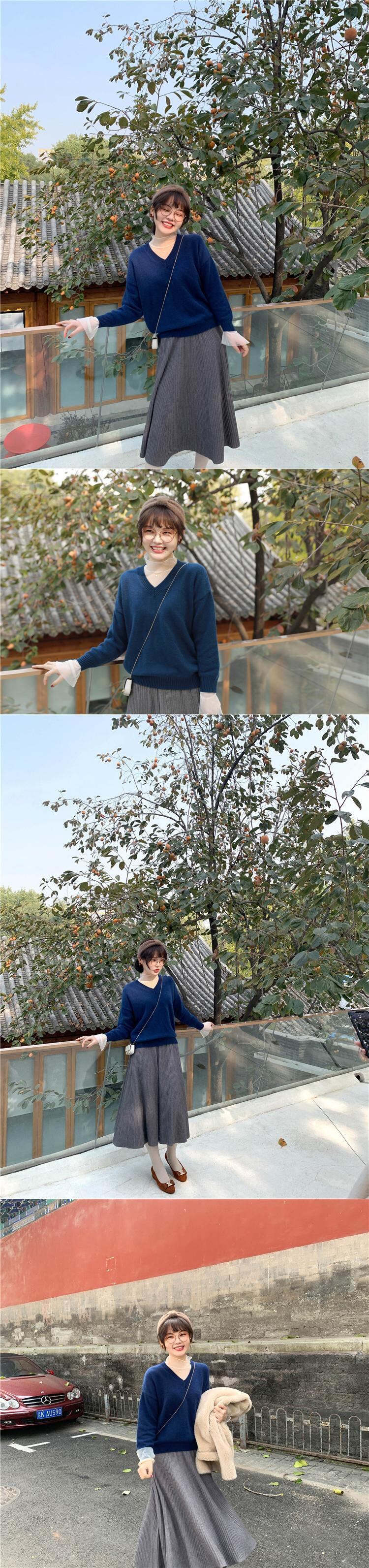 ミスシマリスジンディアンシンプルでうるさくないVネックセーター、2020年春の女性用ニットセーター missi97369115293