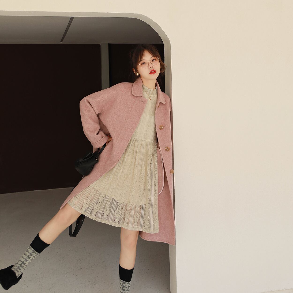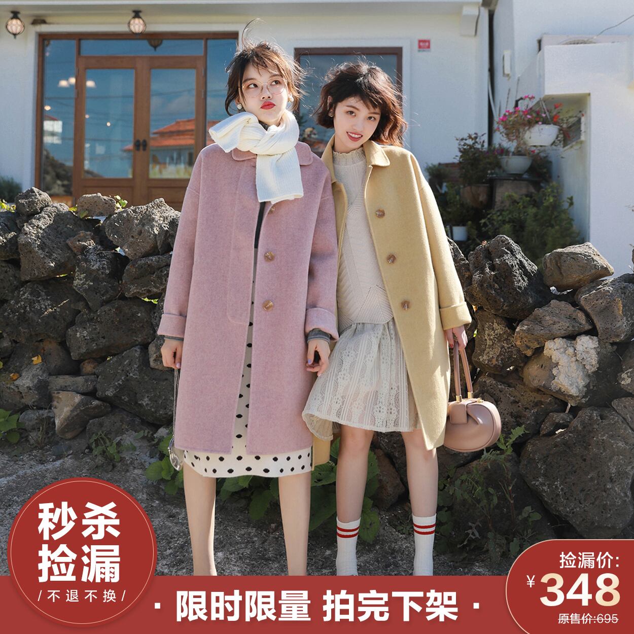 ミスシマリスレトロな小さなラペルヘリンボーン両面ウールコート特に小さな人に適しています missi66027424081