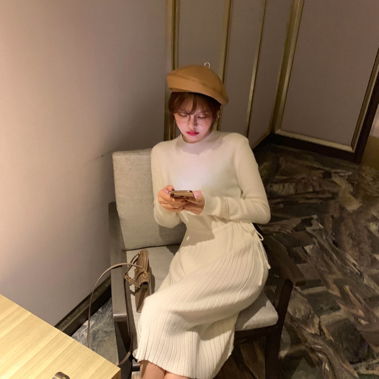 ミスシマリス復活アップグレードされたペーパーマンニットスカートレースアップウエストホールストライプドレス missi86082878724
