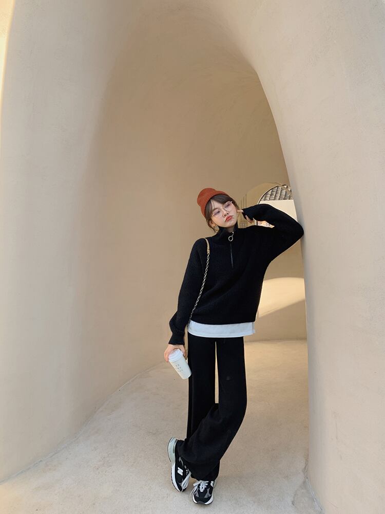 ミスシマリス【ロングレッグニットパンツ】パンツ女性は薄くてオールマッチのニットストレートレッグパンツカジュアルパンツパンツ missi90960357643