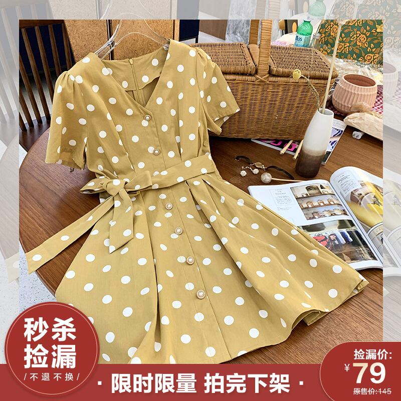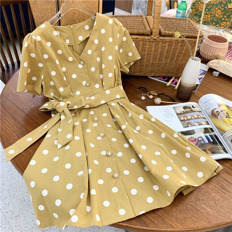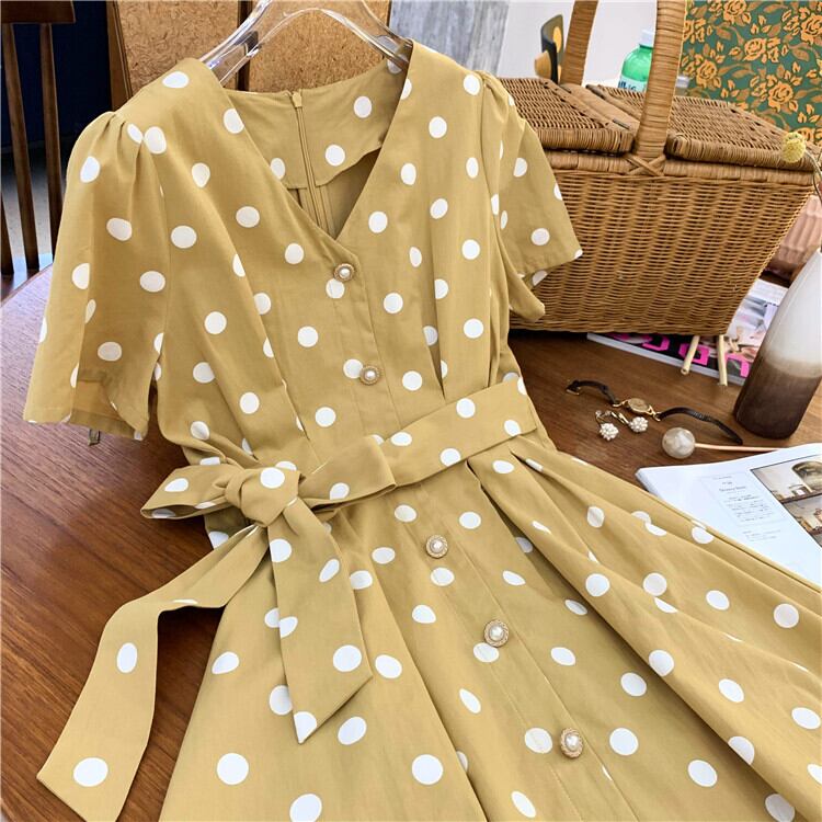 [新しい第3号7.28に住んでいます]ミスシマリスイエローウエスト水玉ドレス missi24049624735