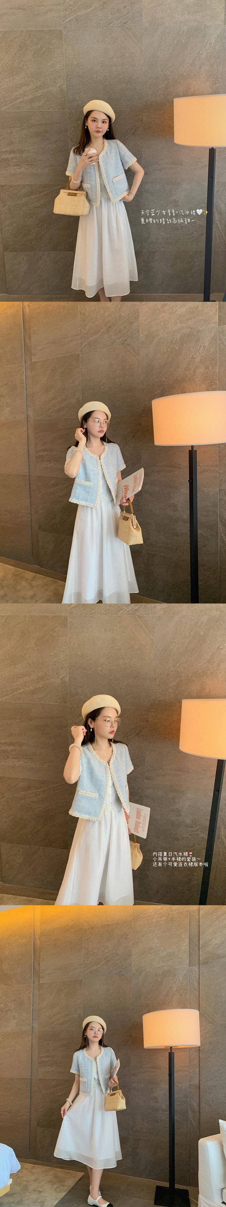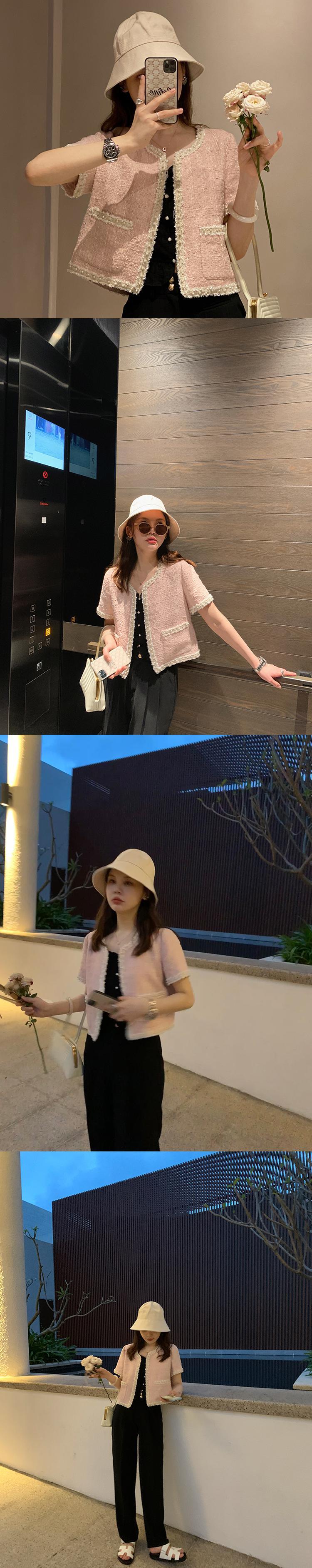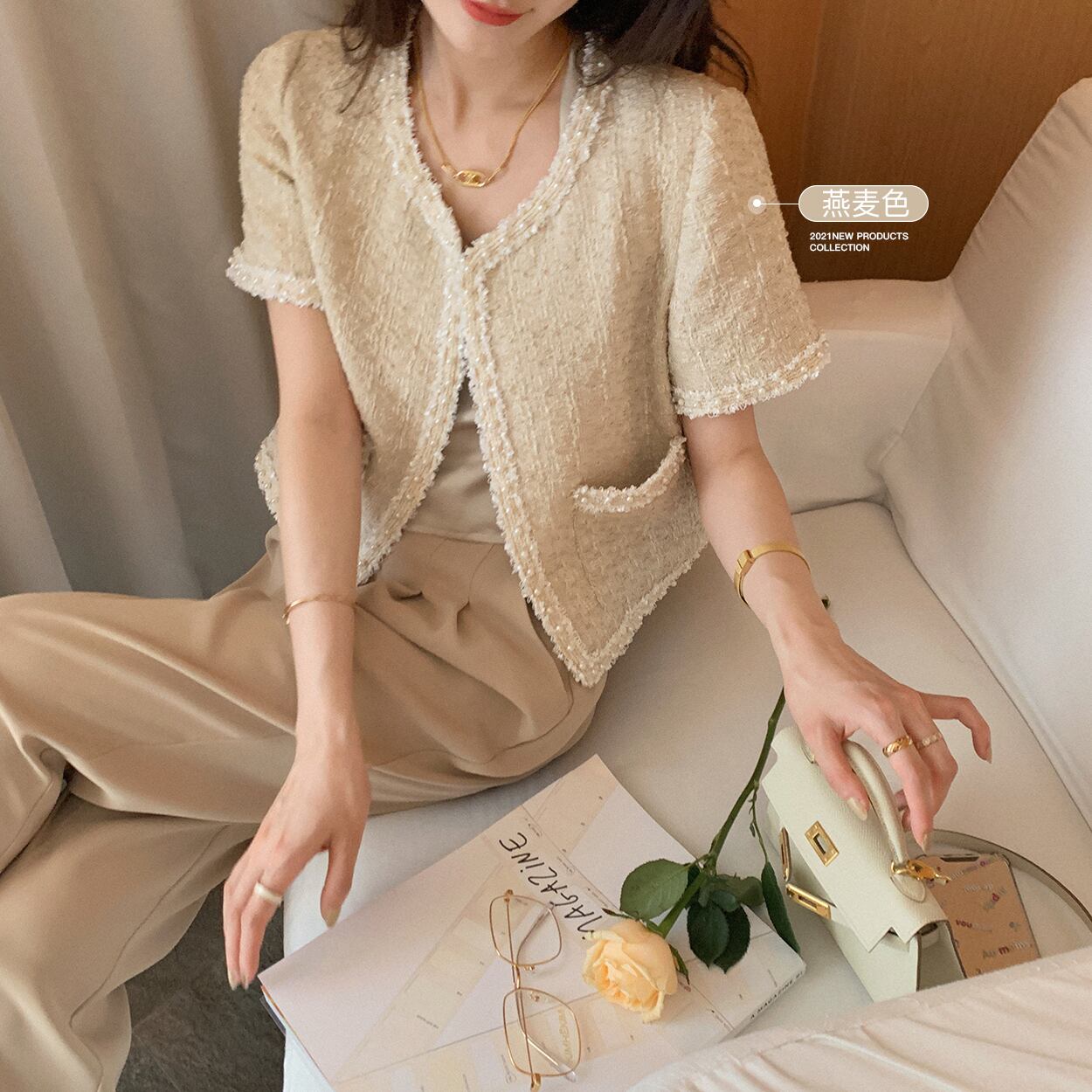 ミスシマリス半袖小さな香りの薄いショートジャケット女性の夏の野生の2021年の新しい甘い気質 missi8372893586