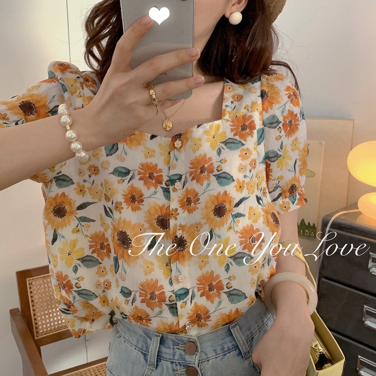 ミスチップマンク【ひまわりフラワーシー】スカートミドル丈サマーウエストAラインスカート/スモールシャツトップス missi51896195863