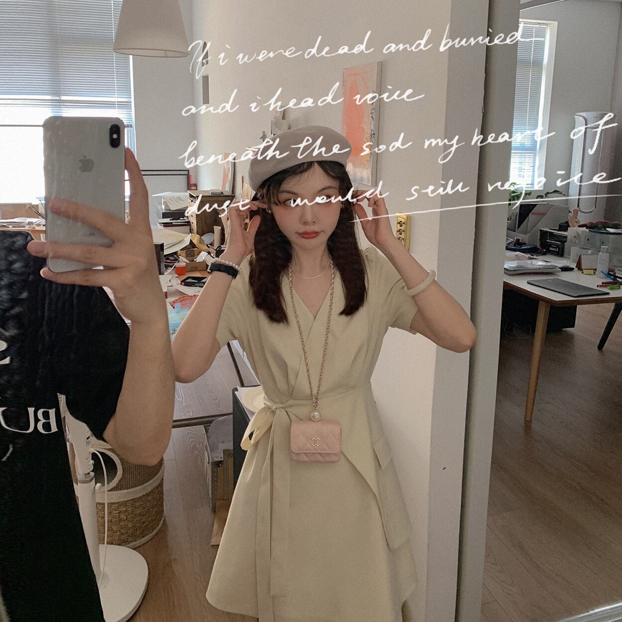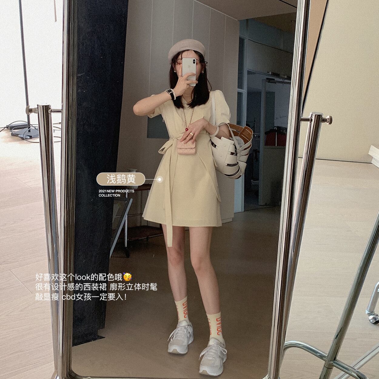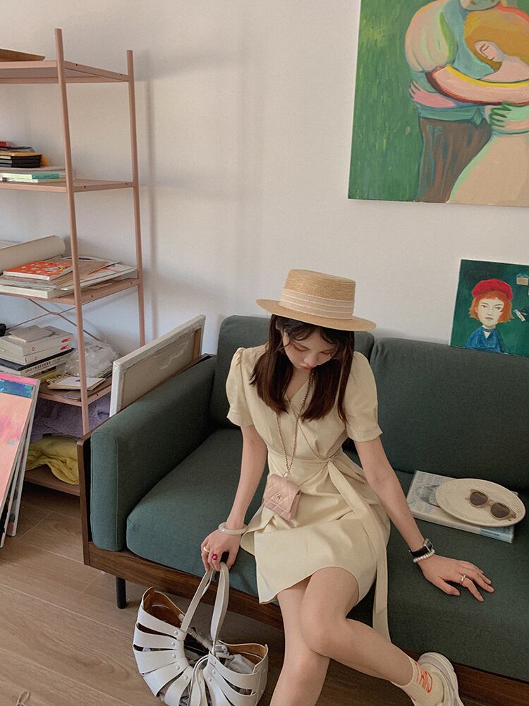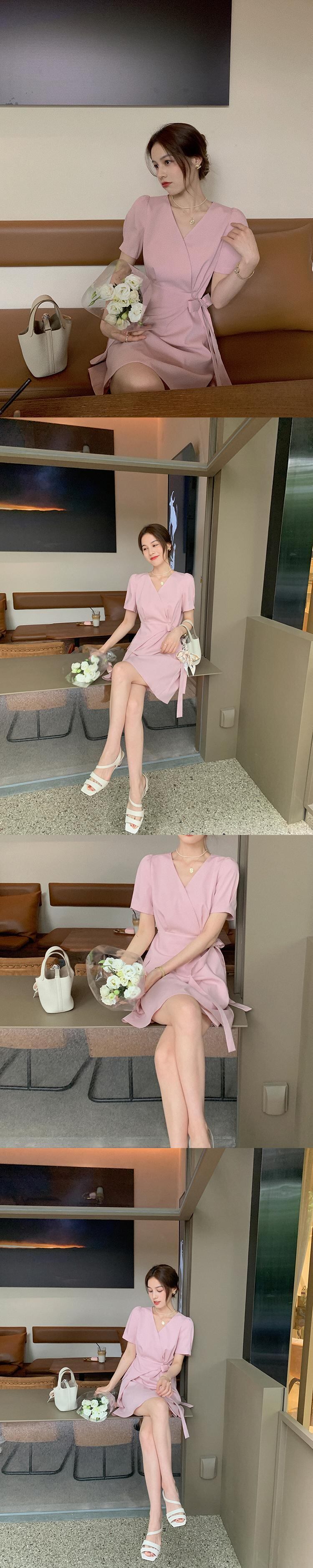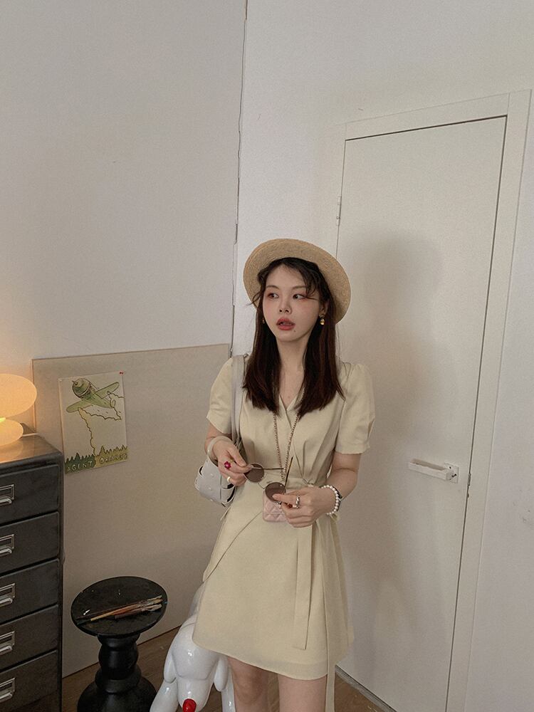 ミスチップマンク【スタジオスカート】Aライン気質Vネックスーツスカートサマースモールスリムワンピース洋ナシシェイプ missi9036636201