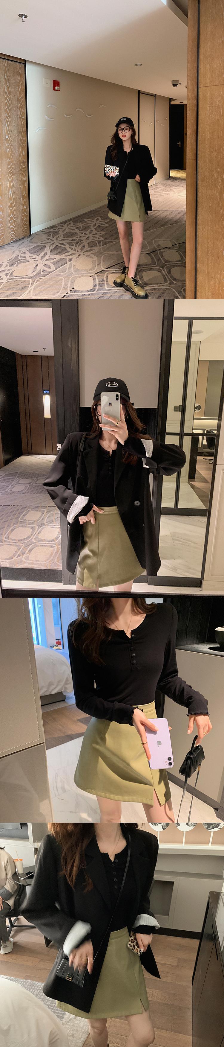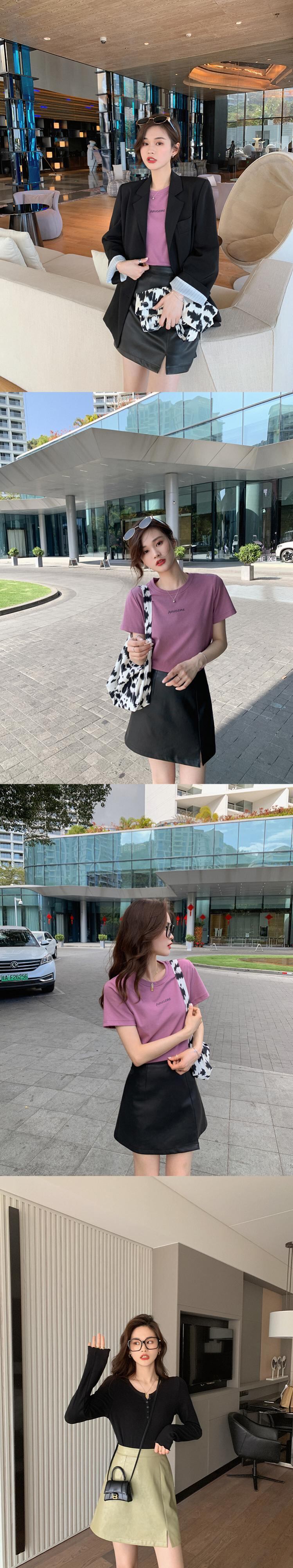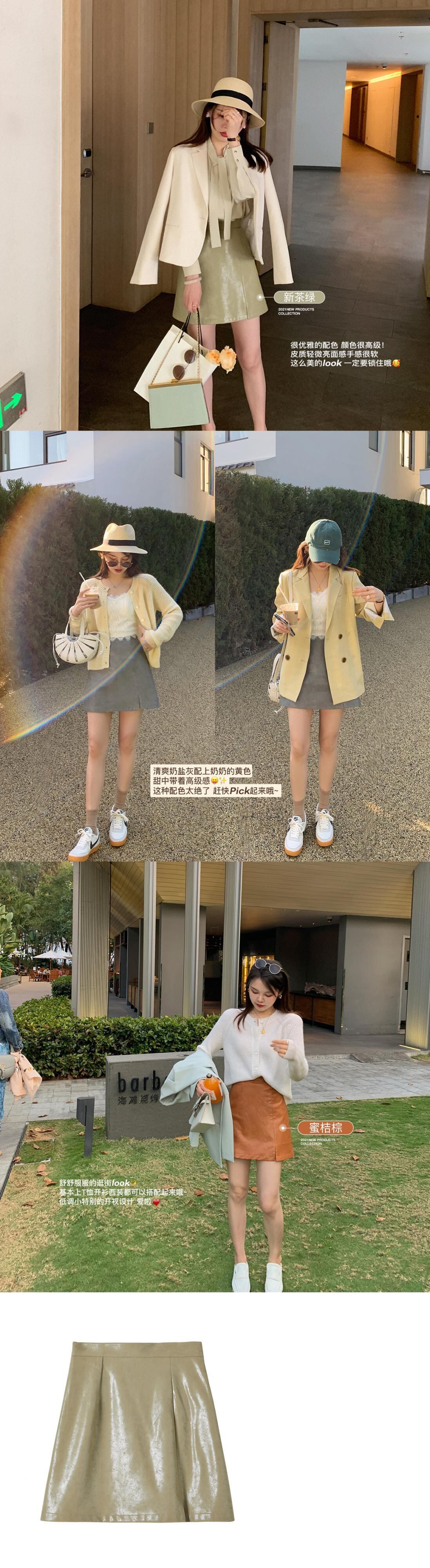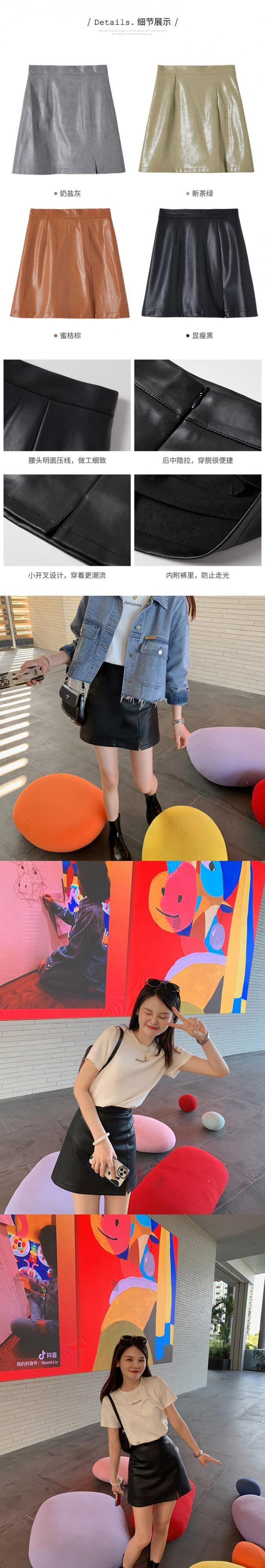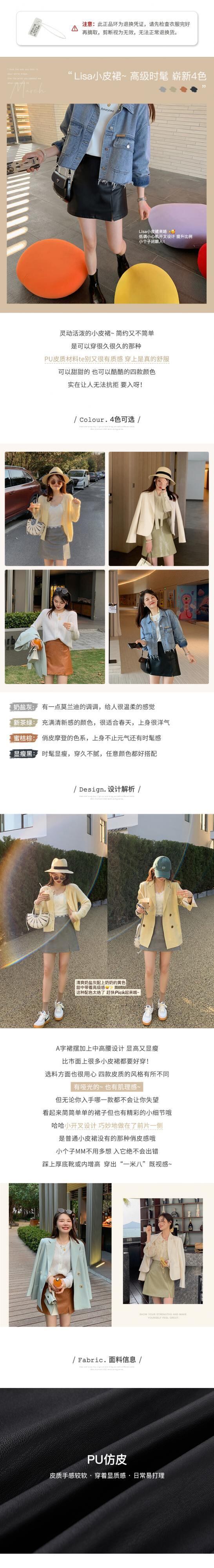 ミスチップマンク【リサスモールレザースカート】スカート2021スプリングウエストAラインショートスカートピュアカラーヒップスカート missi61535764011